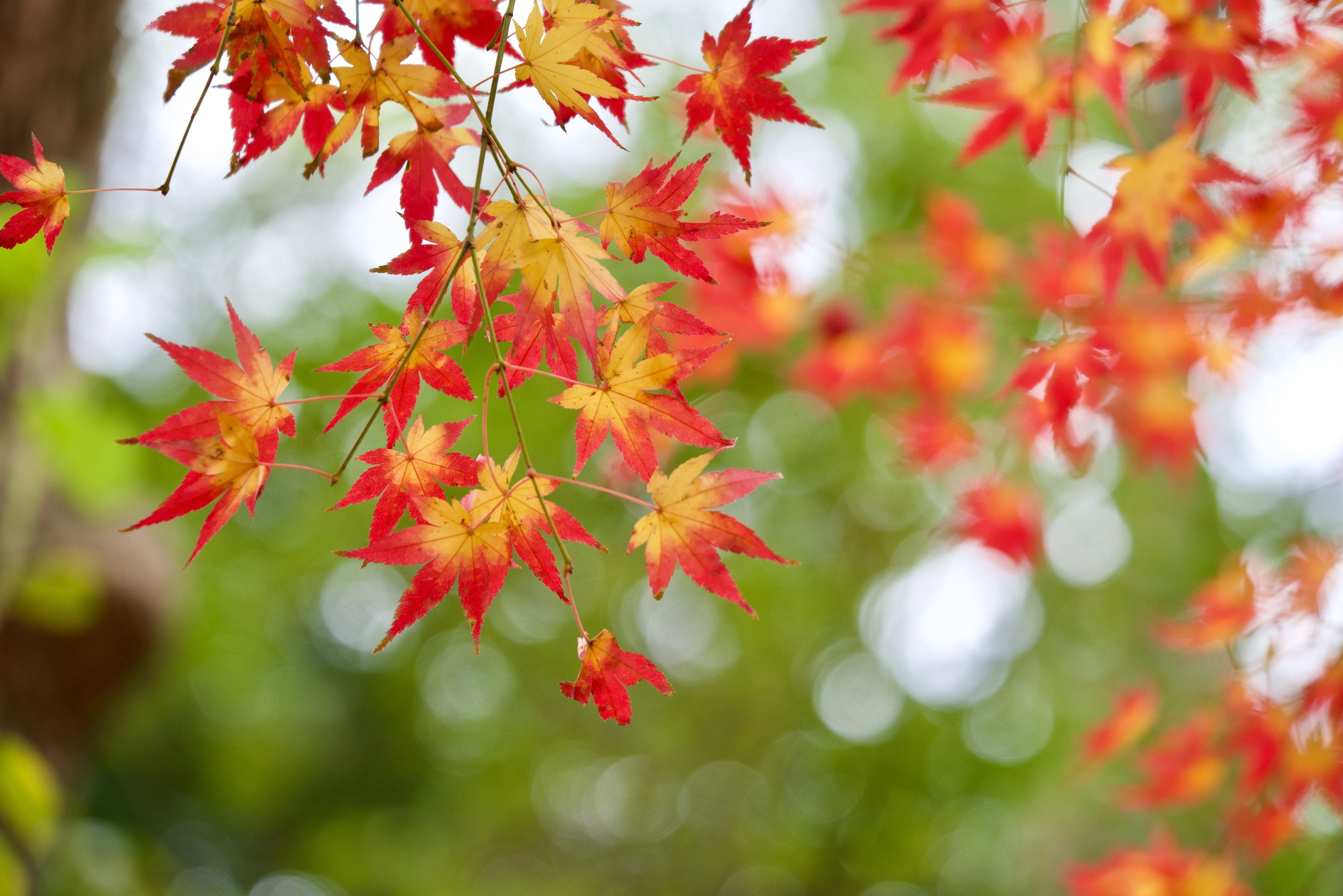 黄から赤へのグラディエーションのカエデ この色味はありそうですが実際には少なくて、この日見れたのはこの一本だけでした
