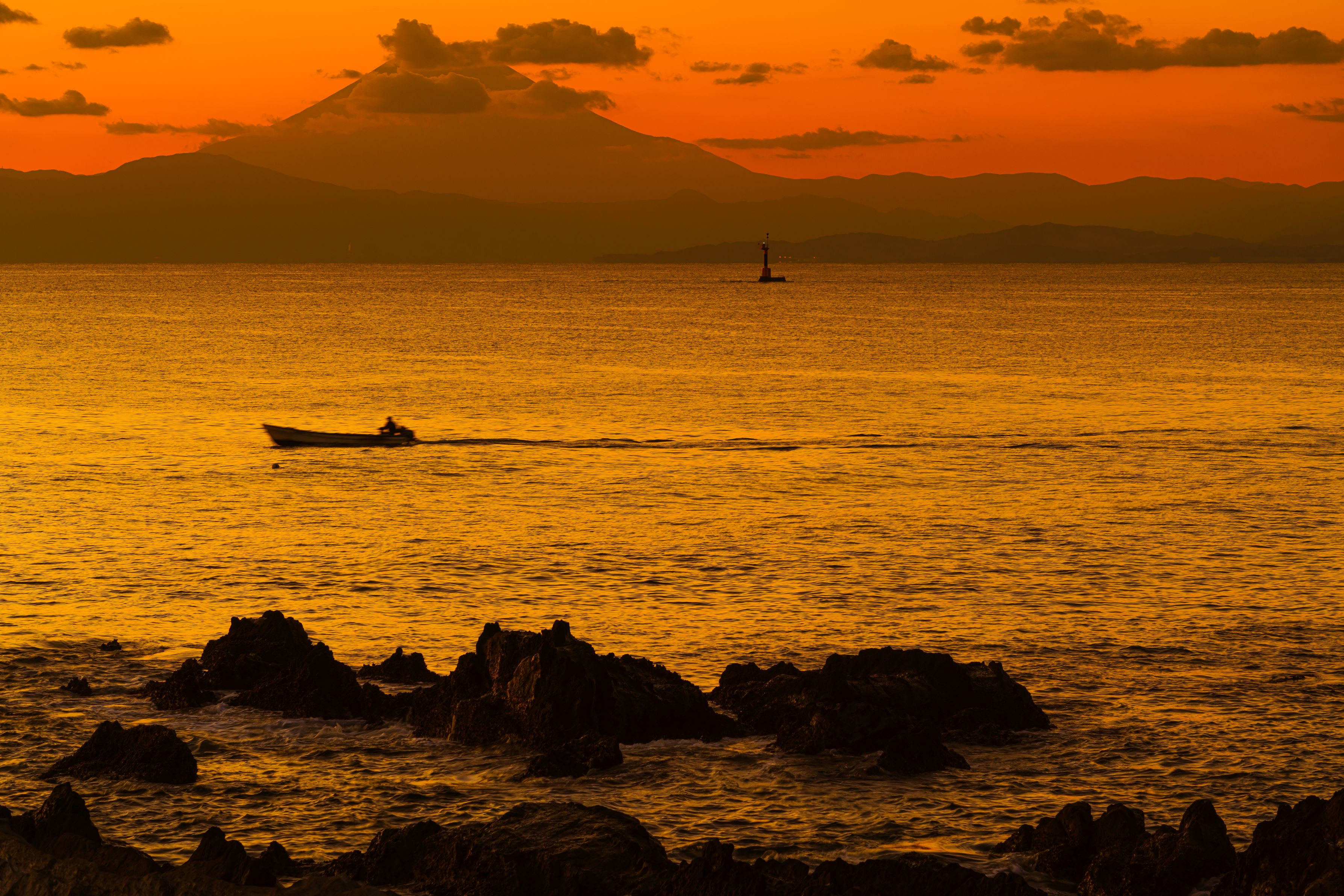 製品情報>My Sony>αcafe>荒崎海岸 夕暮れの富士山(moyuさん)