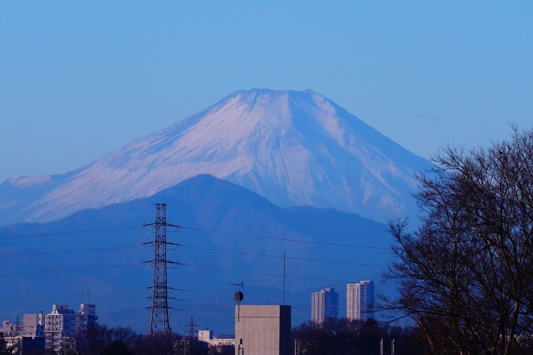 明けまして、おめでとうございます。 晴朗の年明けを迎えた、元朝の富士山の勇姿です。 今年も、よろしくお願いいたします。 (自宅近くのいつものスポットで撮影)