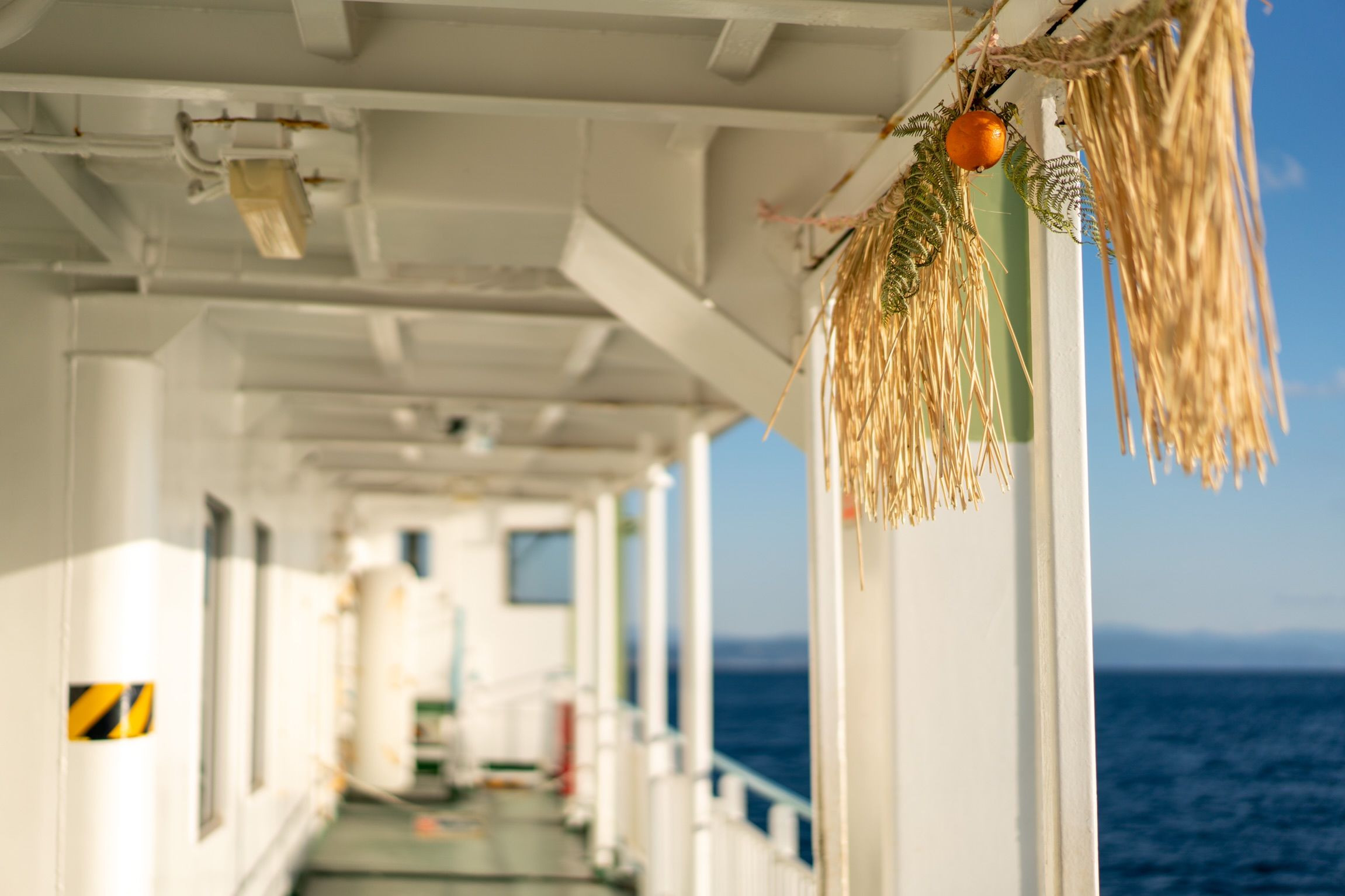 あけましておめでとうございます。 帰省先から帰るフェリーに乗っていたら、舷門に注連縄が取り付けられていました。