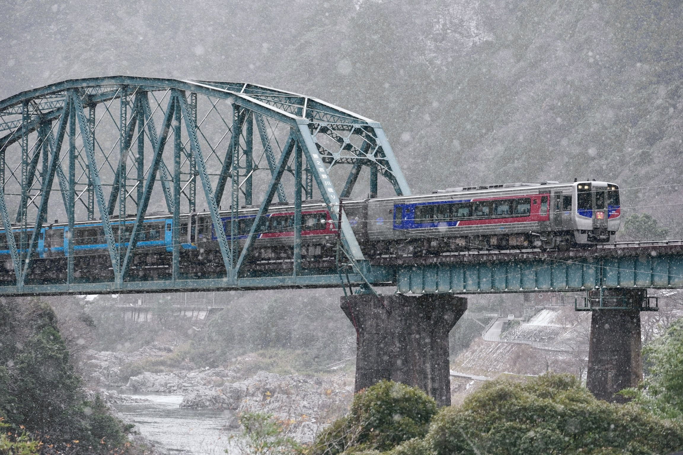 製品情報>My Sony>αcafe>雪ちらつく吉野川第二橋梁を渡る(鳩の尻尾さん)