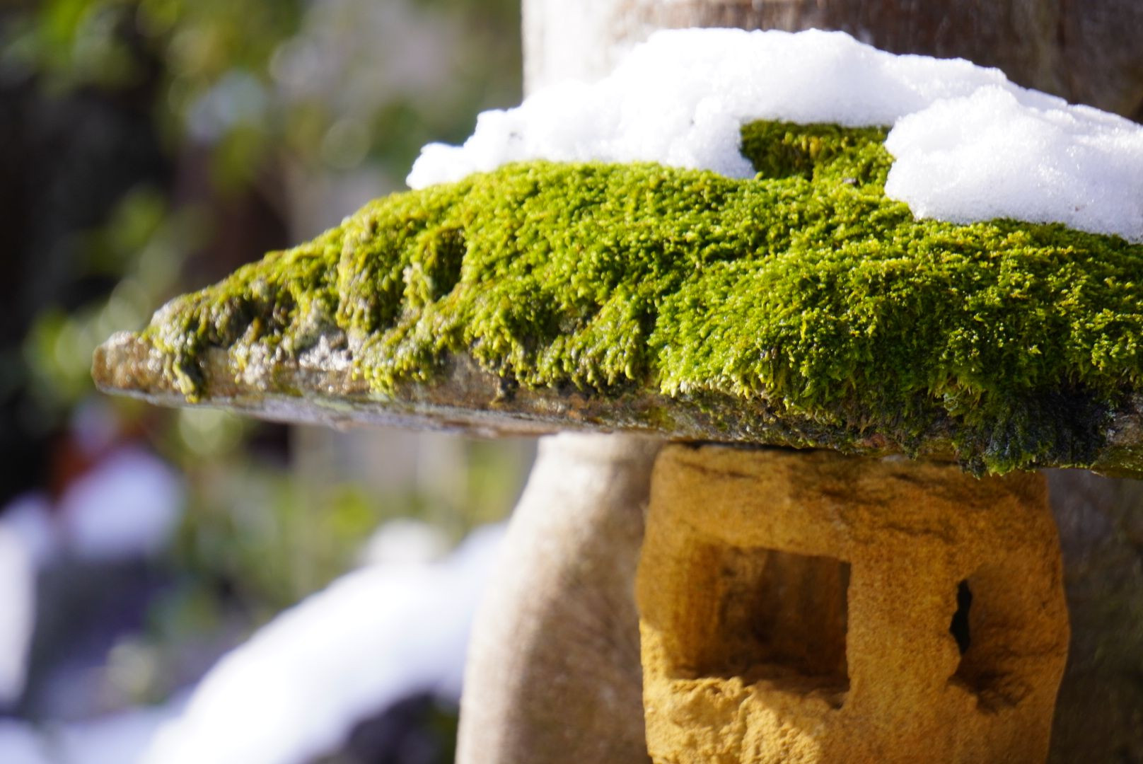 庭先に苔を乗せた石灯籠が西日に照らされていたので撮影してみました。