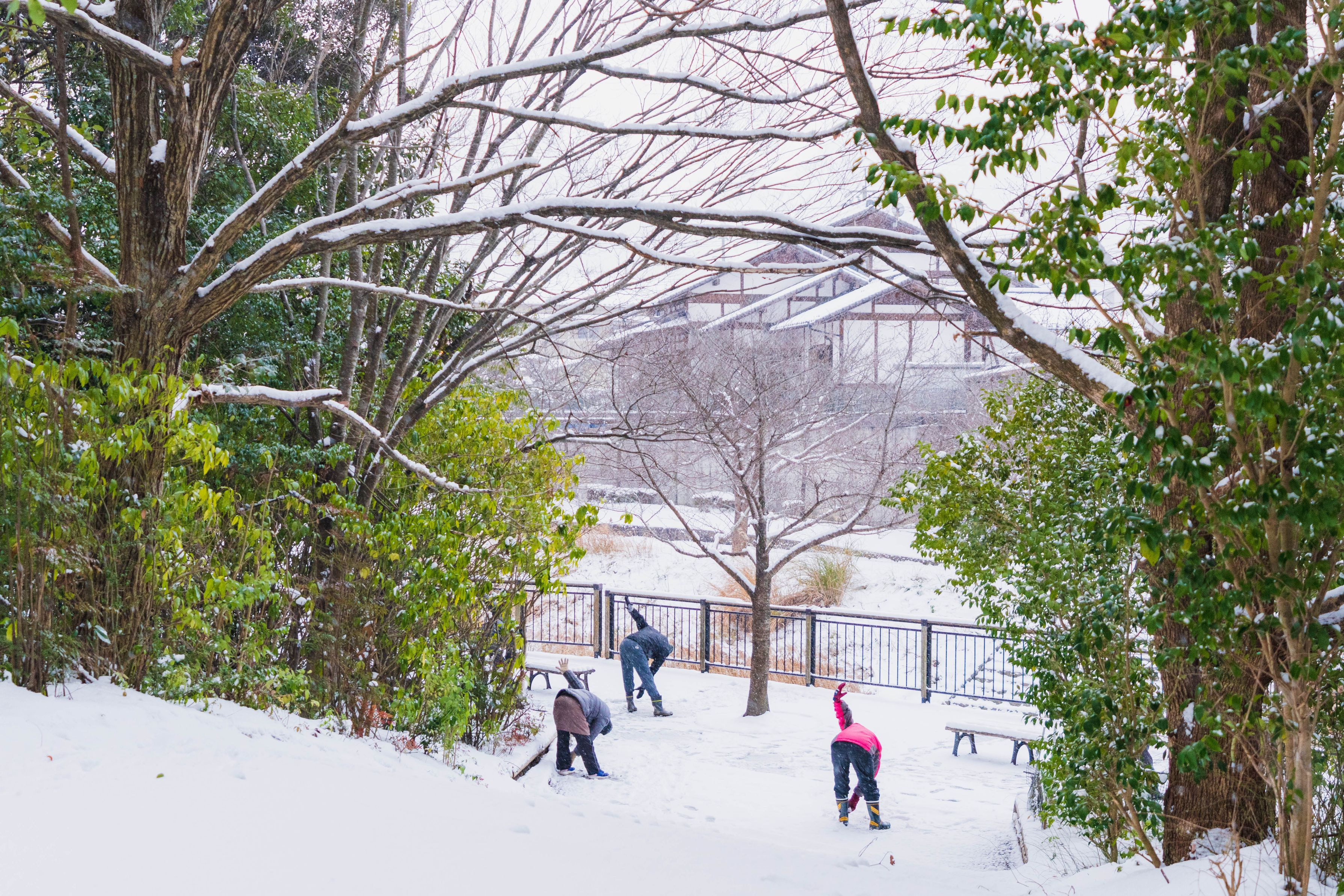 雪景色、何か撮れないかなと散歩していたら、元気よく体操している人々を見かけました。