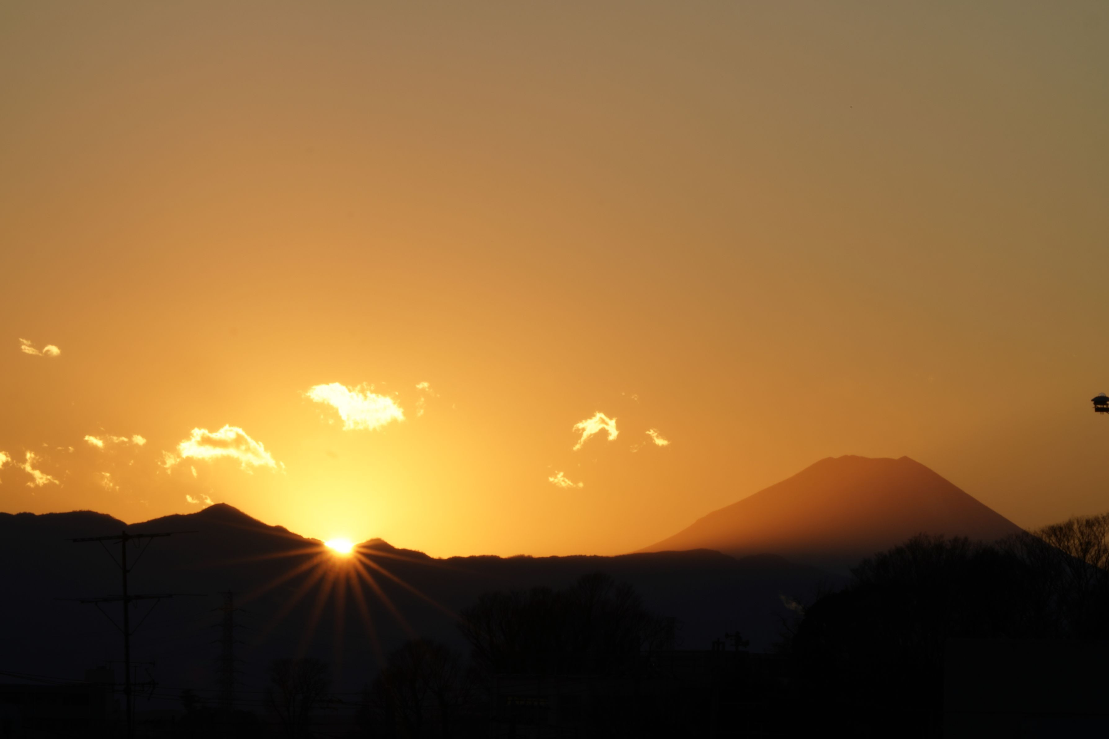 光芒を狙って、夕焼けを撮影してみました