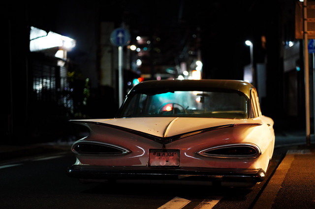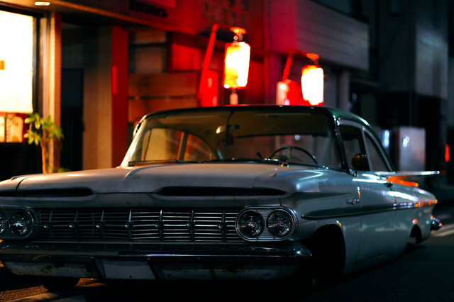 近くに古~いシボレーインパラが停まってました。