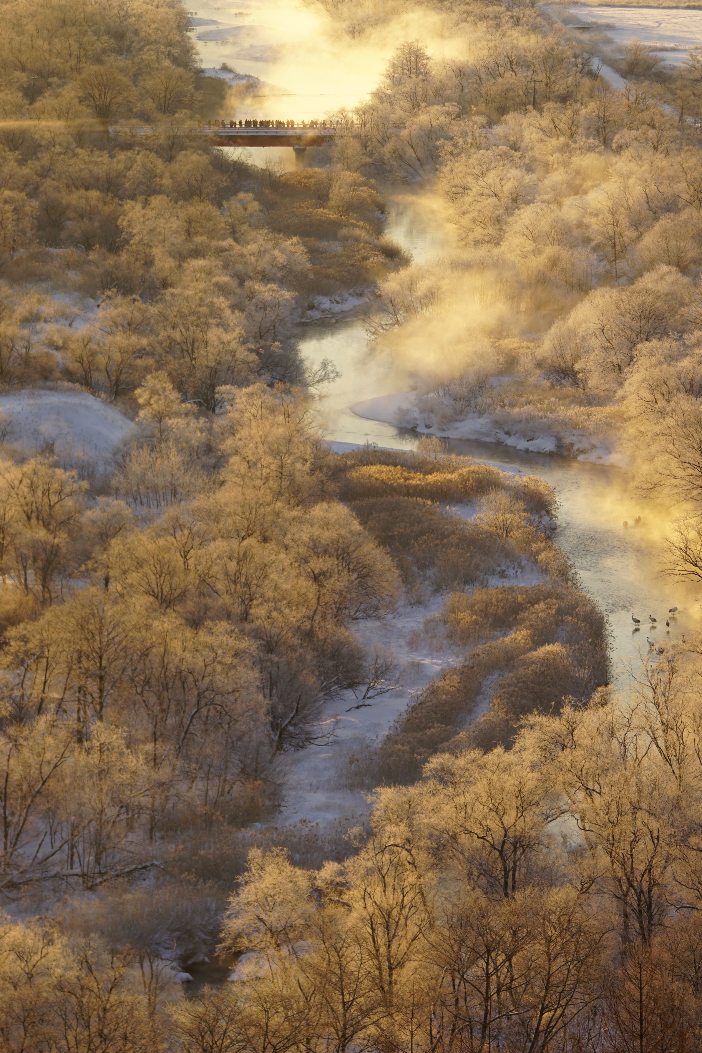 日の出後、一面がピンク色に染まります。 #タンチョウ#