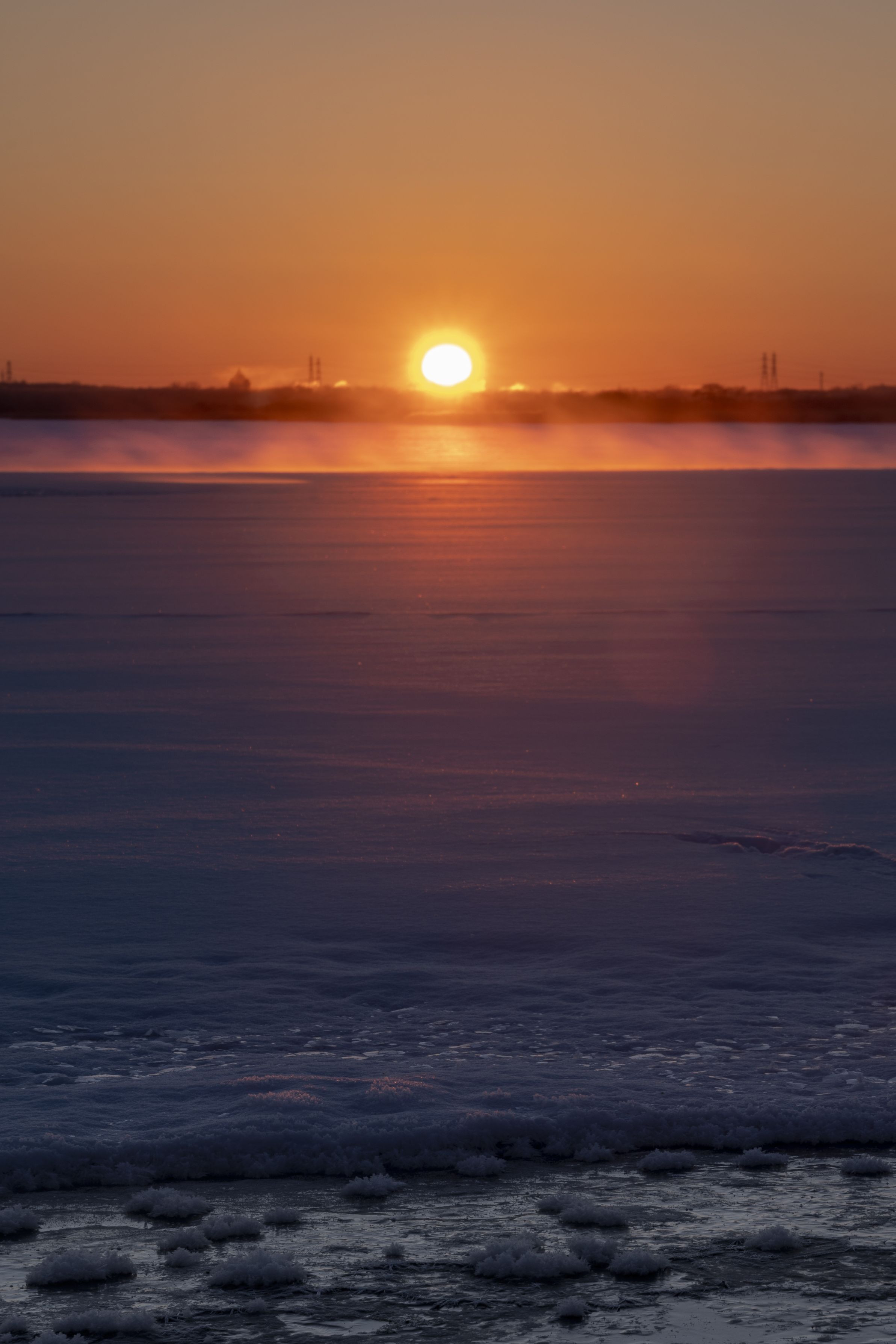 ウトナイ湖の日の出 毛嵐が燃えている様でした