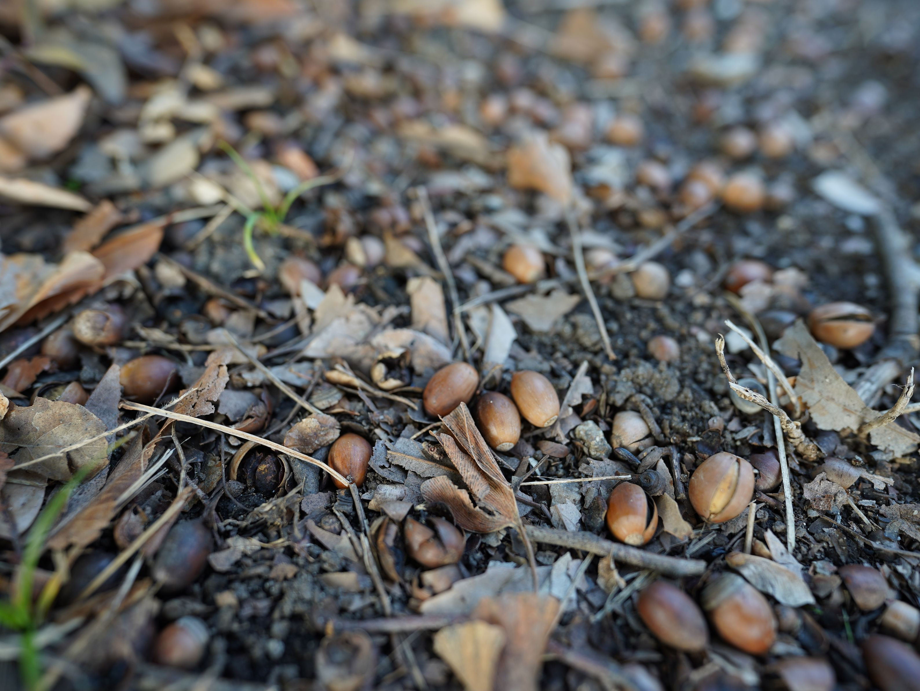 どんぐりが仲良く温め合っていました。