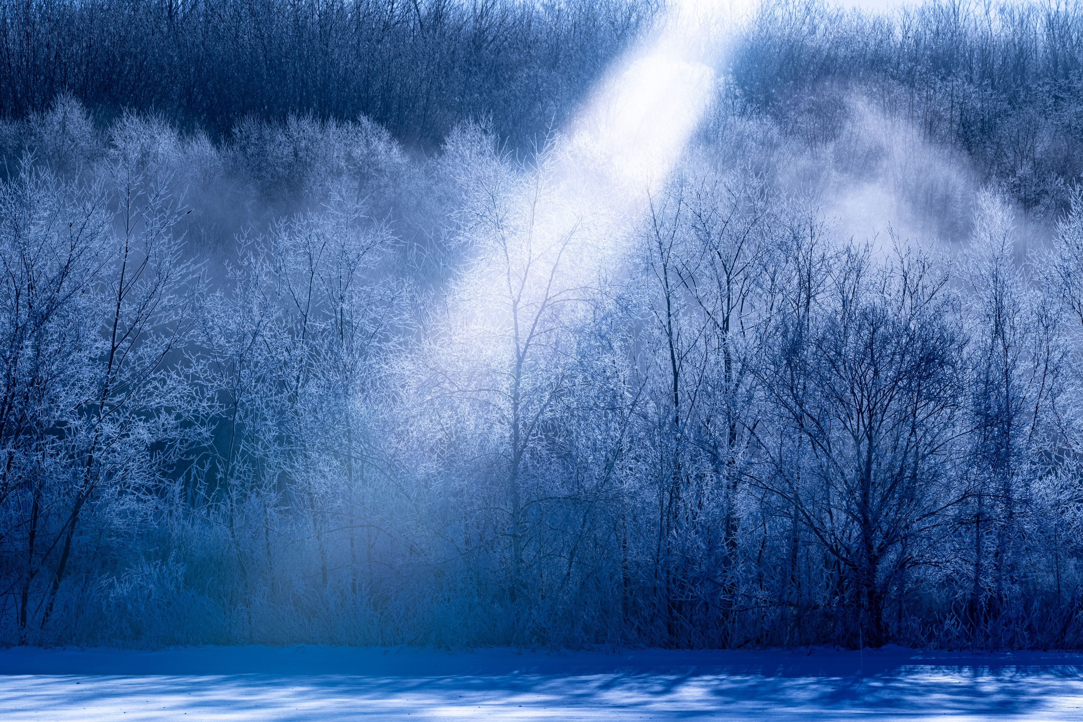 朝陽が霧氷を照らし冬の厳しい寒舞台となりました
