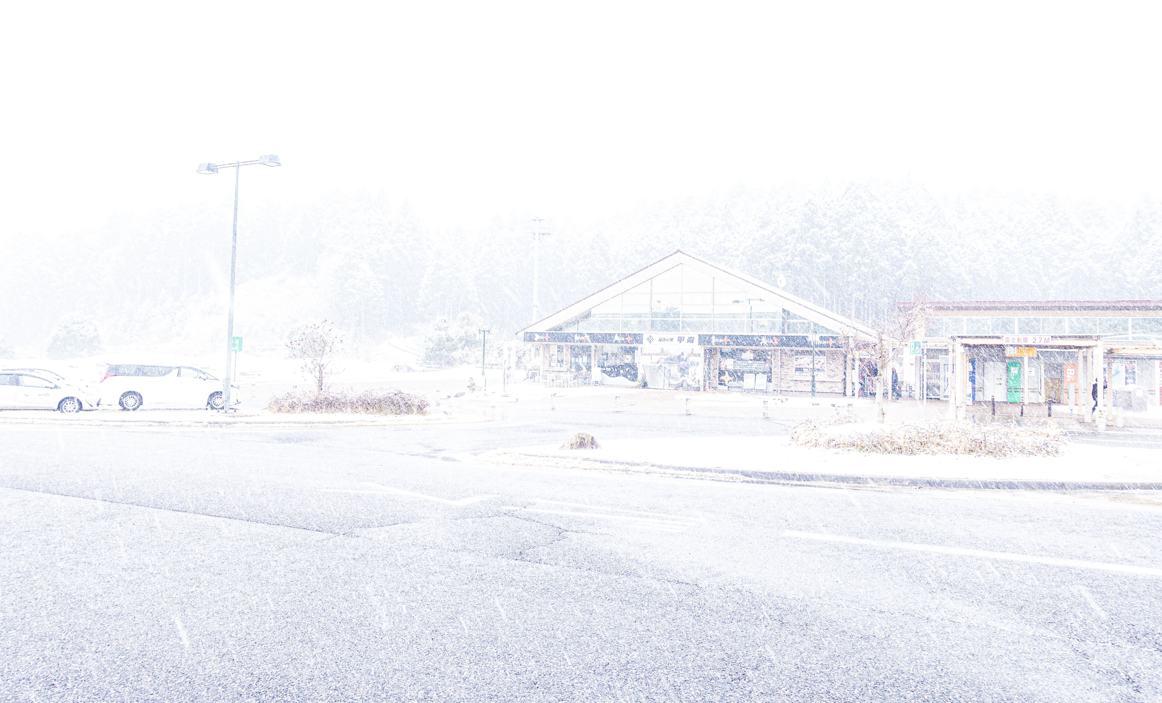とあるパーキングエリアの雪景色。