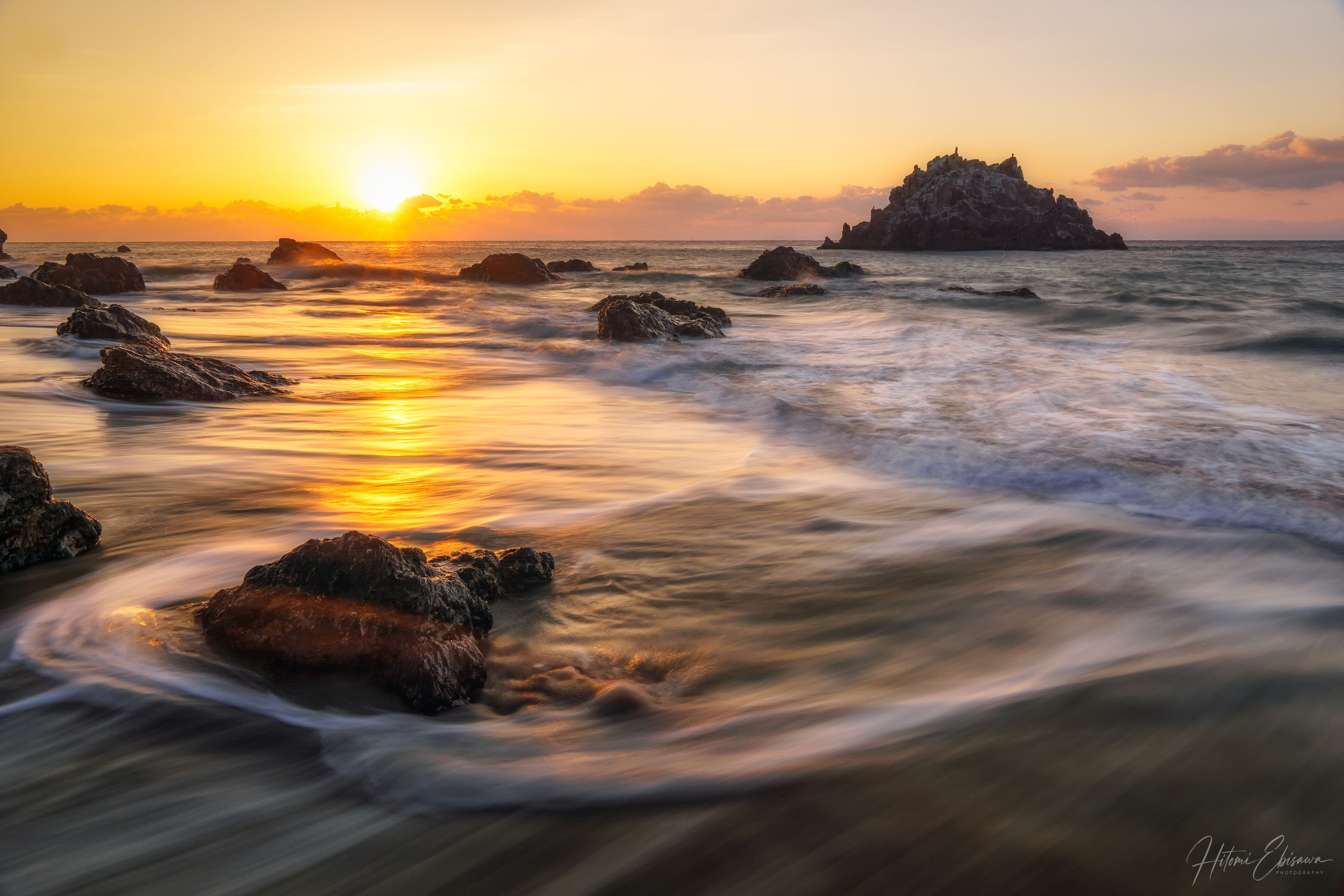 朝日よりも岩!