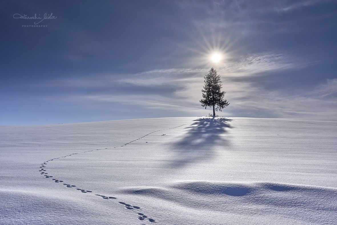 ウサギのようですが、この木を目指した証拠が残っています。ちょうど木の上には輝く太陽が眺めていました