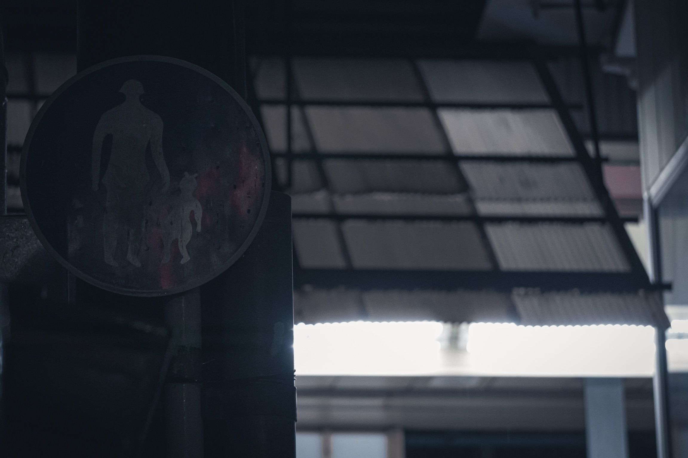 京都市寺町商店街での1枚。 商店街の小道で明らかに必要とされない看板を撮影。 商店街のきらびやかな光と明らかに必要ではない歩行者専用標識の対比に心を動かされ、思わず捕らえました。