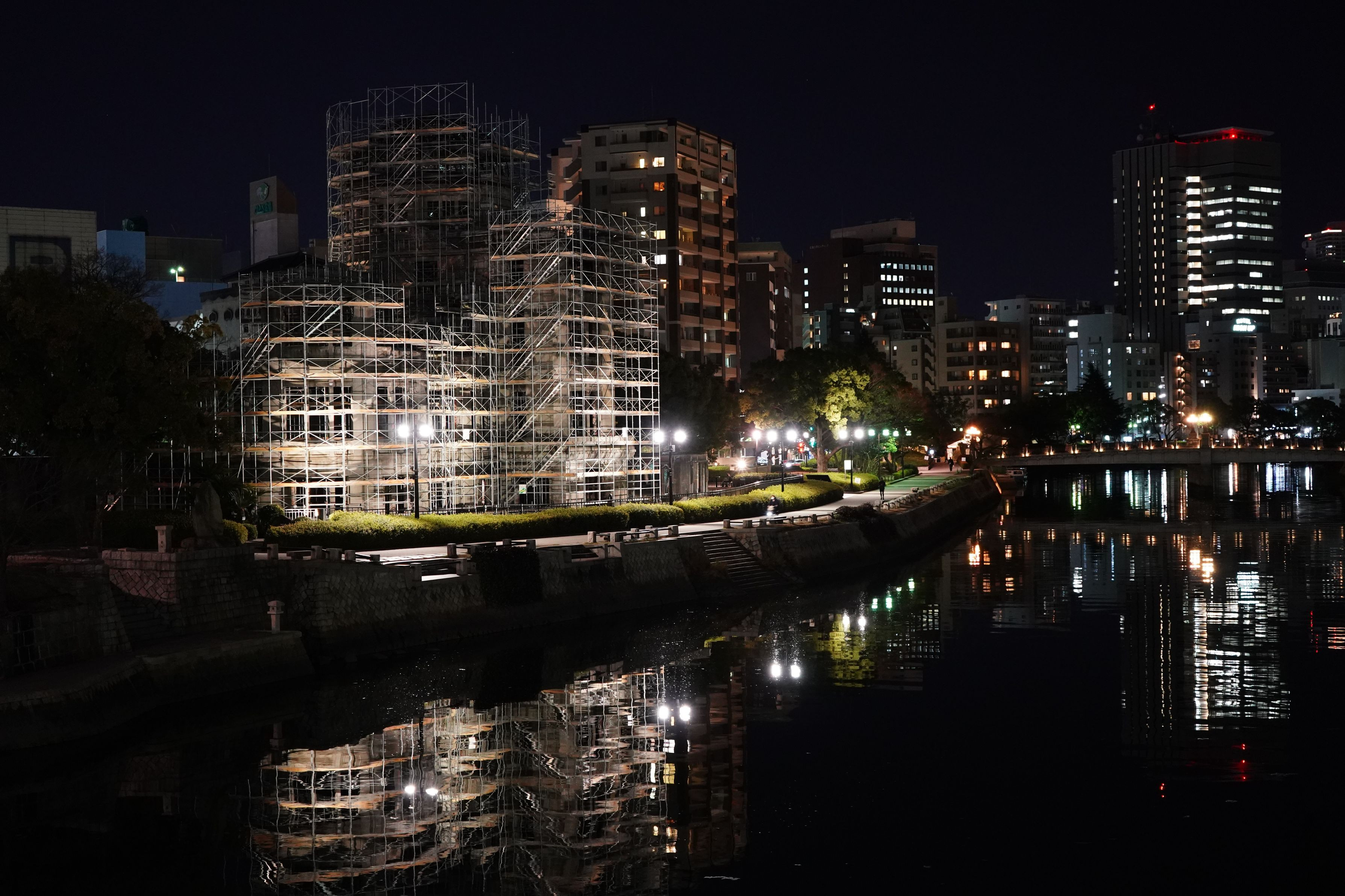 工事中の原爆ドーム、コロナ禍もありひっそり佇んでいました。