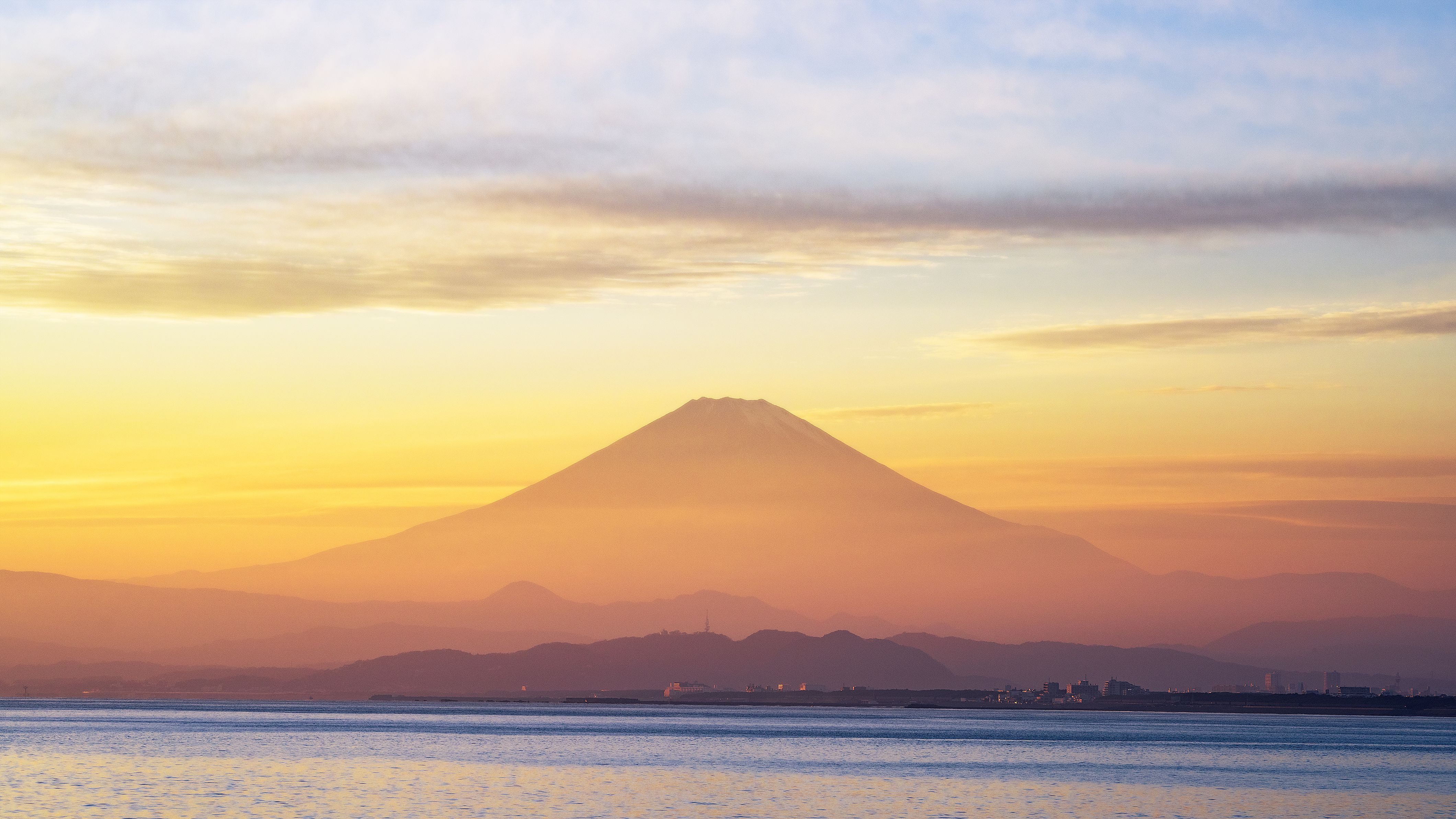 日暮れの時鎌倉から見る富士山