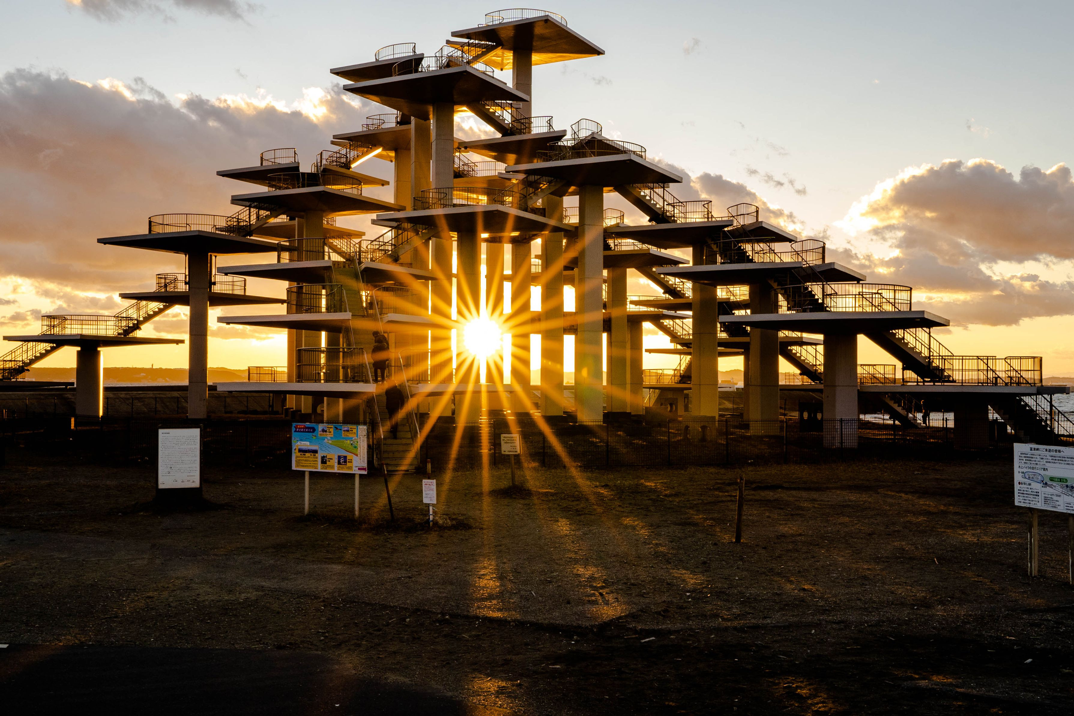 落ちていく光と山