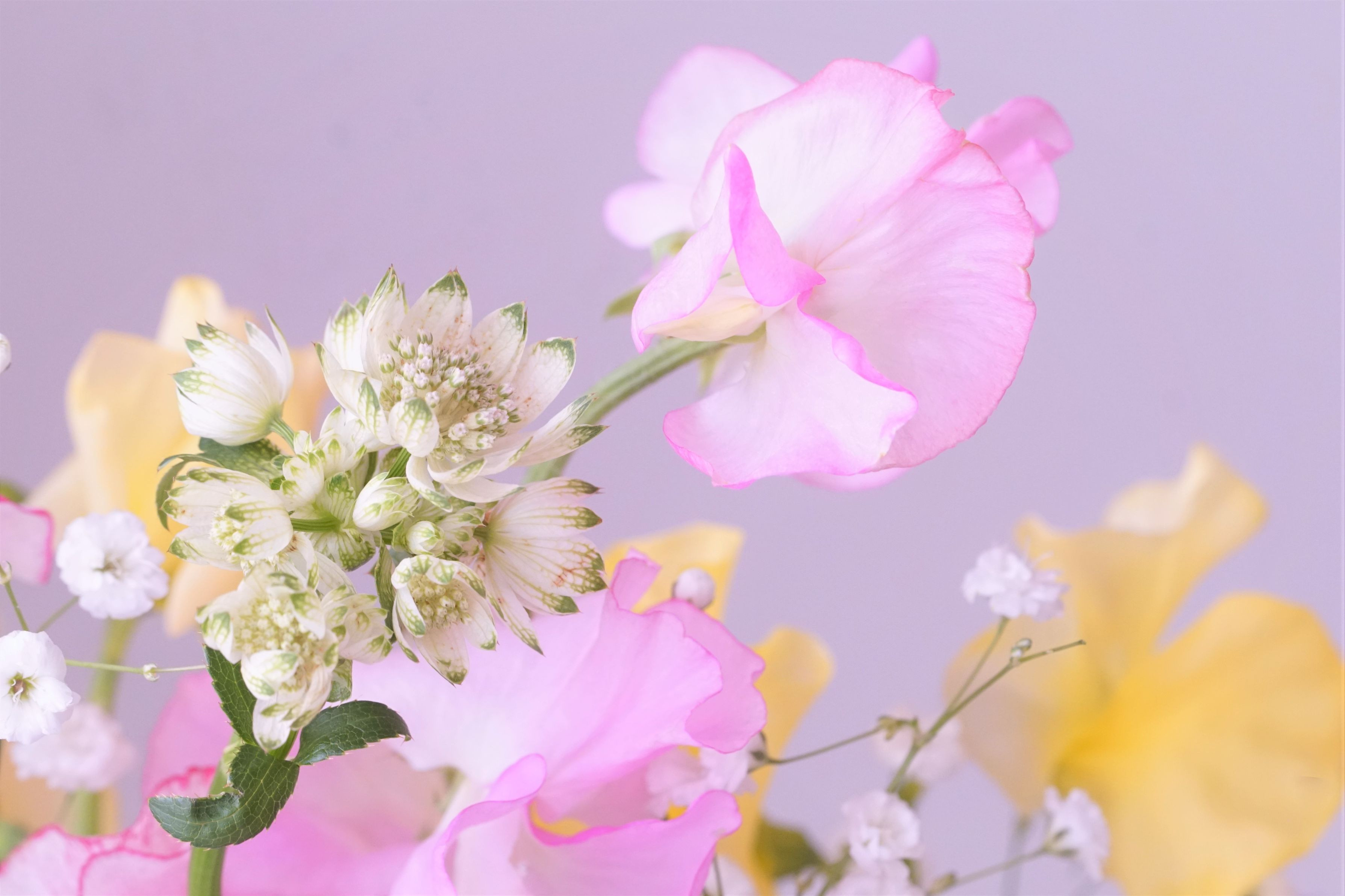 春を告げる「スイートピー」の花 ふんわり、優し過ぎて・・撮影困難 お家でテーブルフォト 挑戦!マクロでF値絞ってみたのですが! 春の足音、聞こえますかぁ~~