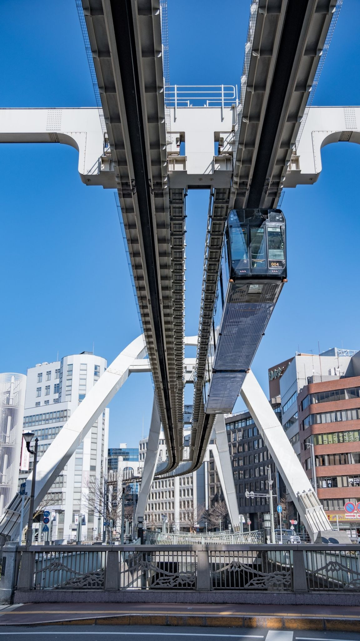 千葉駅から出ているモノレールです。ちょうど電車が通りかかったので撮りました。