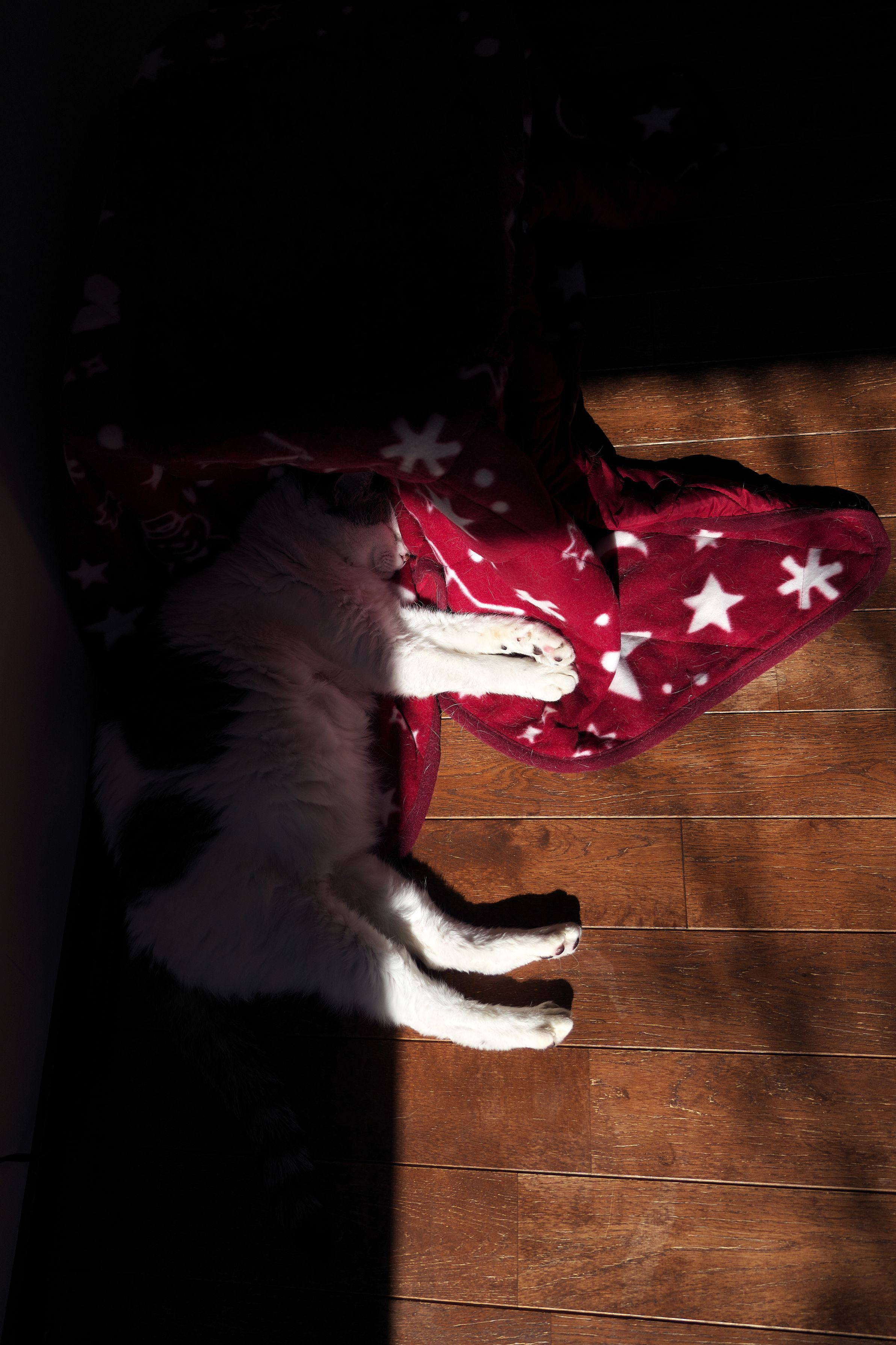 お日様があったかく猫様専用こたつから出てきて30分後ぐらいです。 笑いながら写真を撮ったら片目でちらっと見て"にゃ"(うるさい)と言われました。