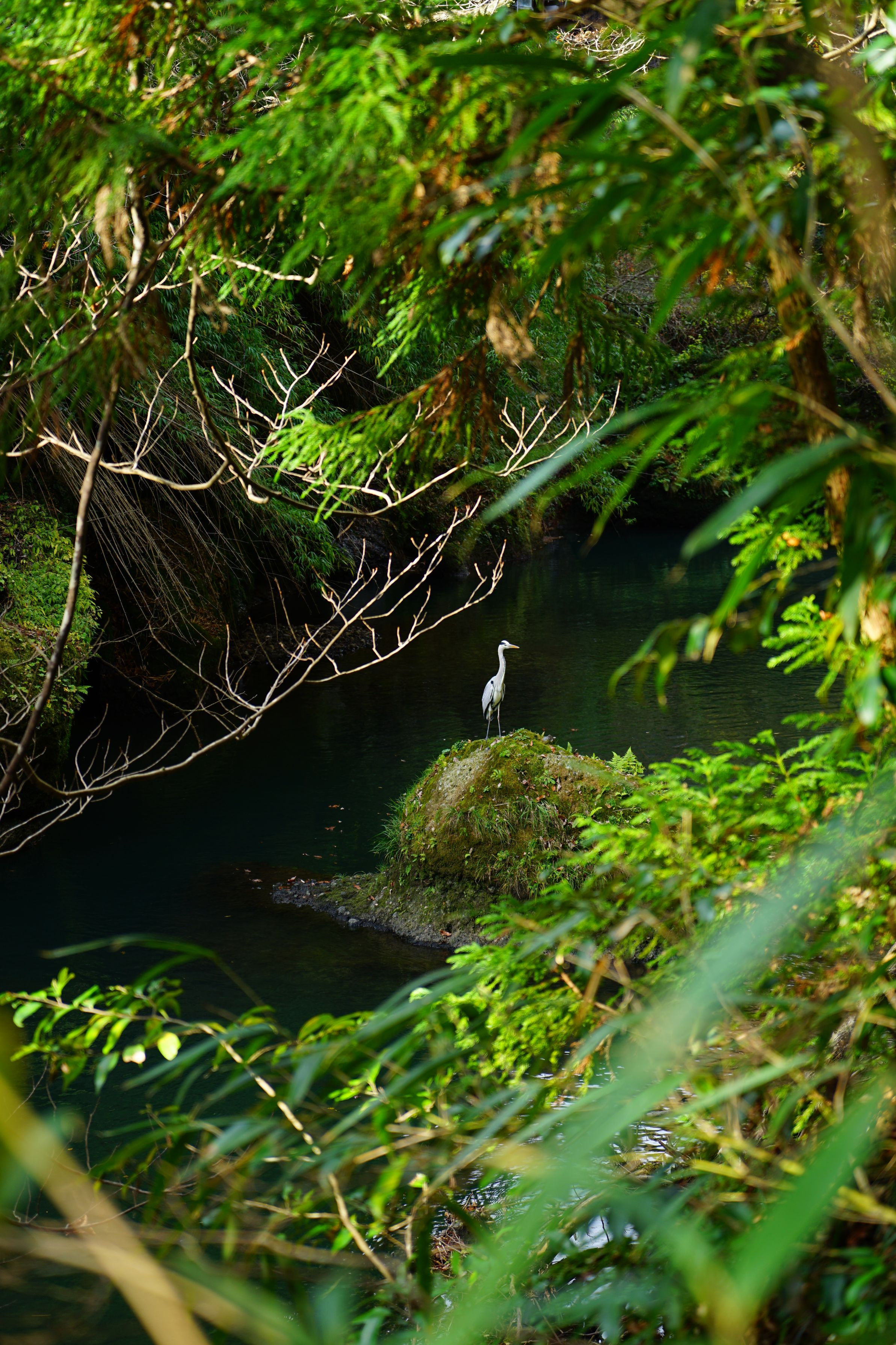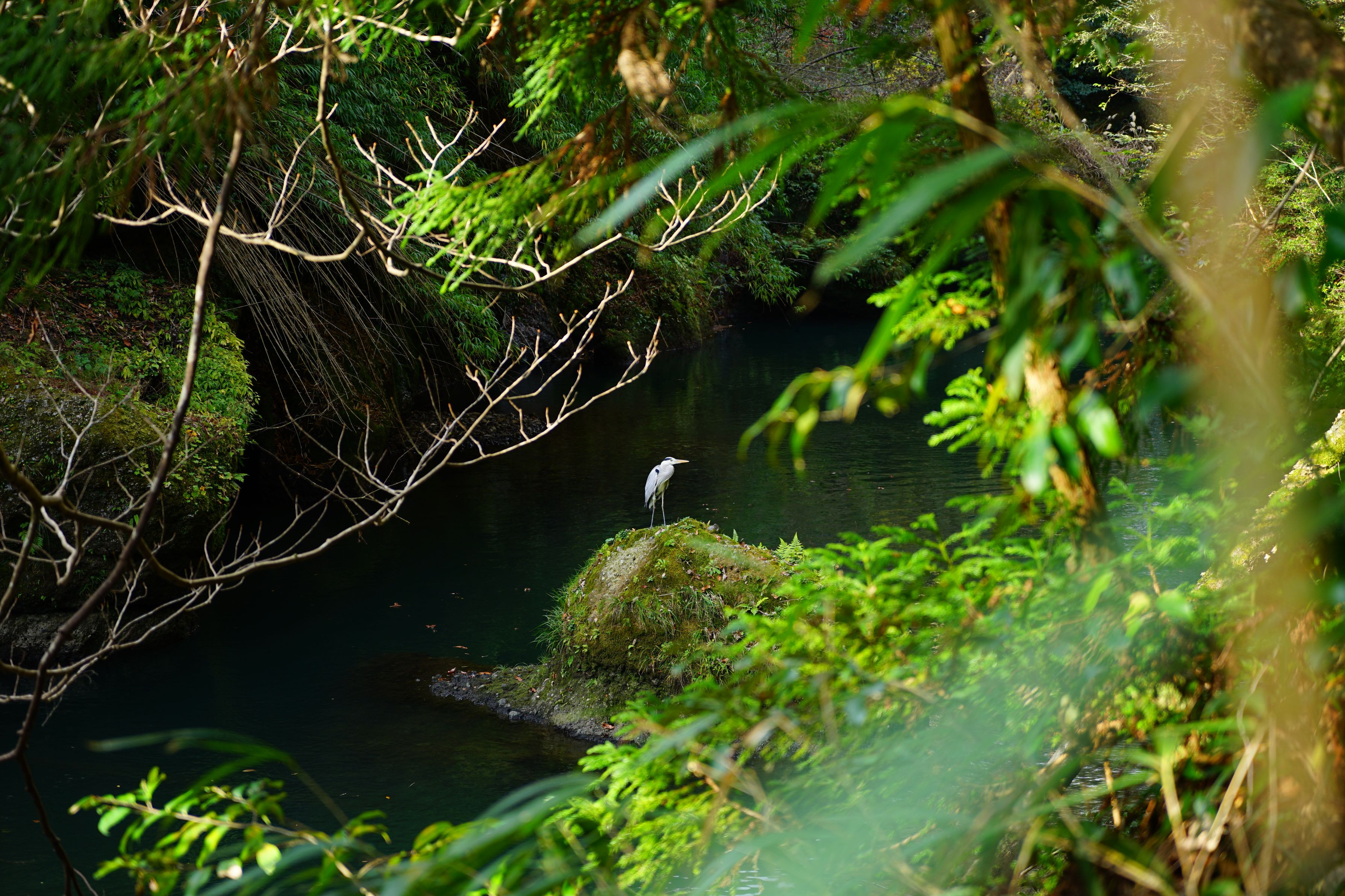 山中温泉の鶴仙峡谷で出会ったアオサギです。 #アオサギ#