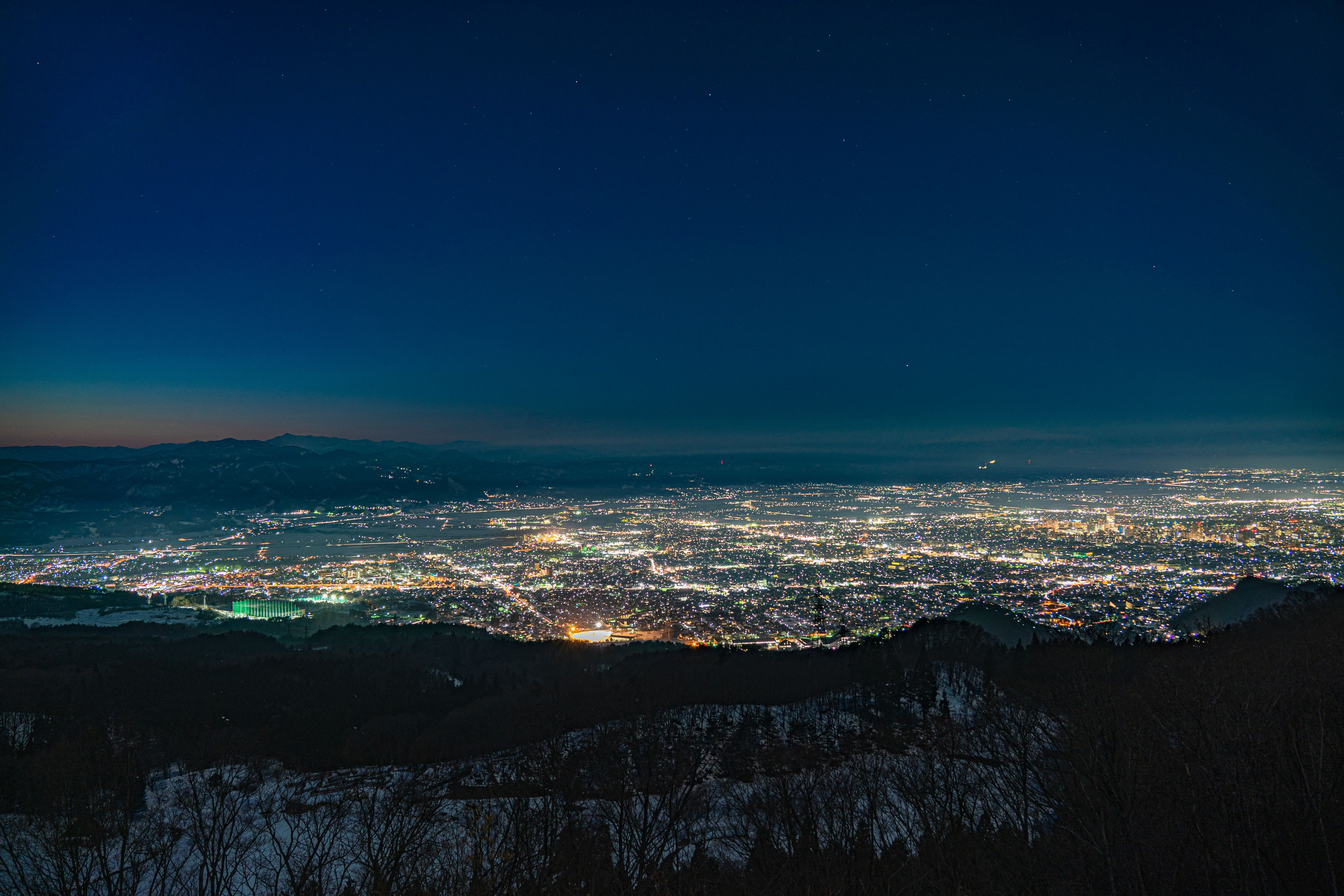山形西蔵王展望公園 夕暮れ+夜景+星空のコラボを撮影