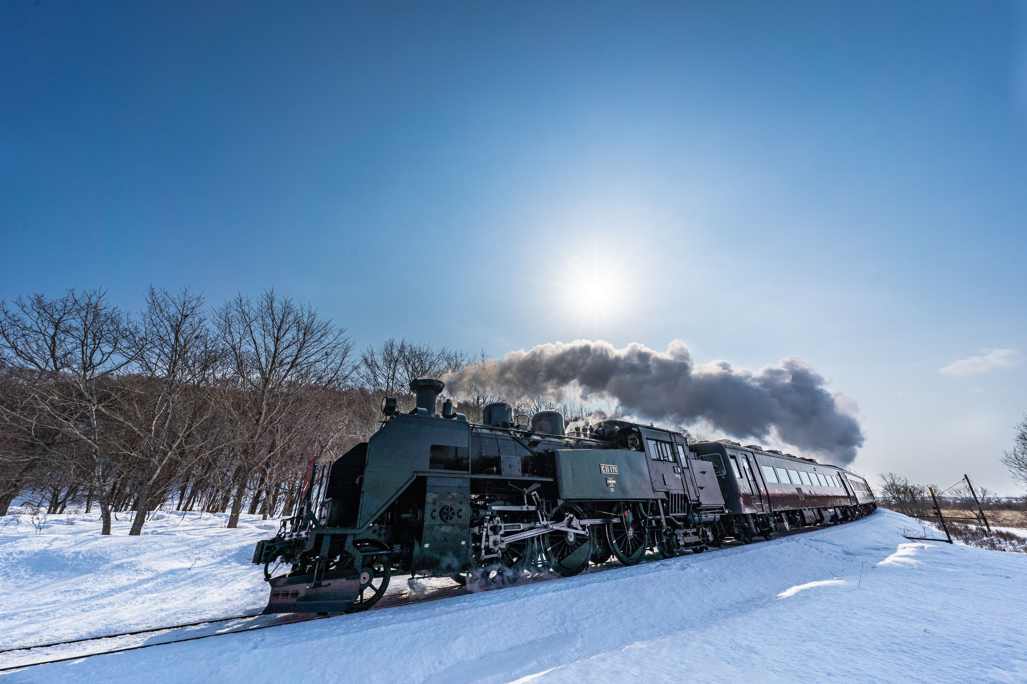 ではなく、「SL冬の湿原号」 勇ましい走りに数多くの写真家がシャッターを下ろします。 釧路湿原国立公園内にて