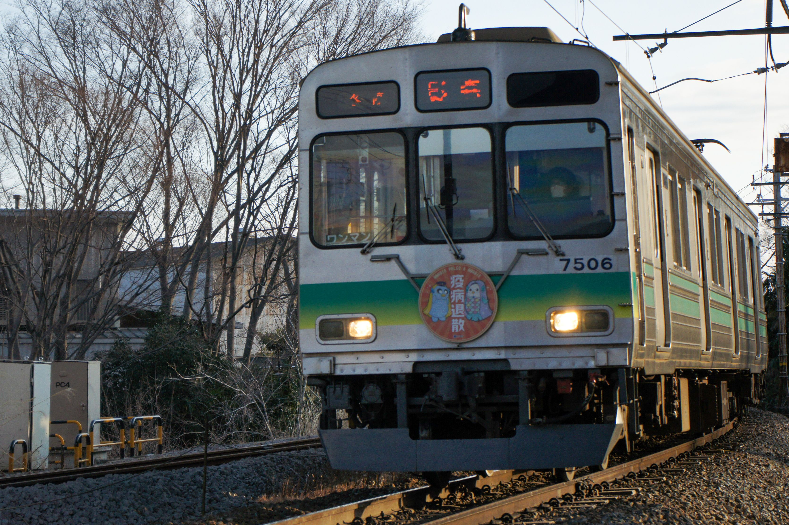 秩父鉄道7000系。ヘッドマークに「疫病退散」とあります。なかなかやるな秩父鉄道って感じです。本当に「退散」してほしいです。