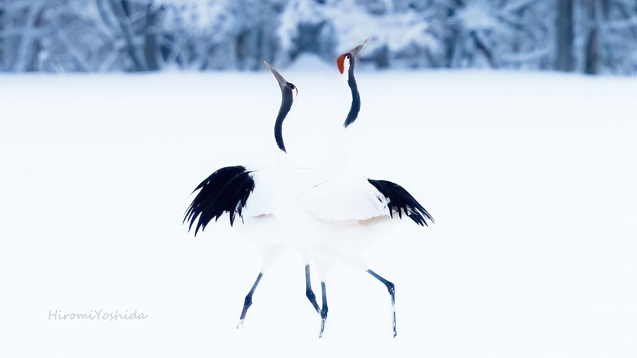 雪の中で踊っていた丹頂