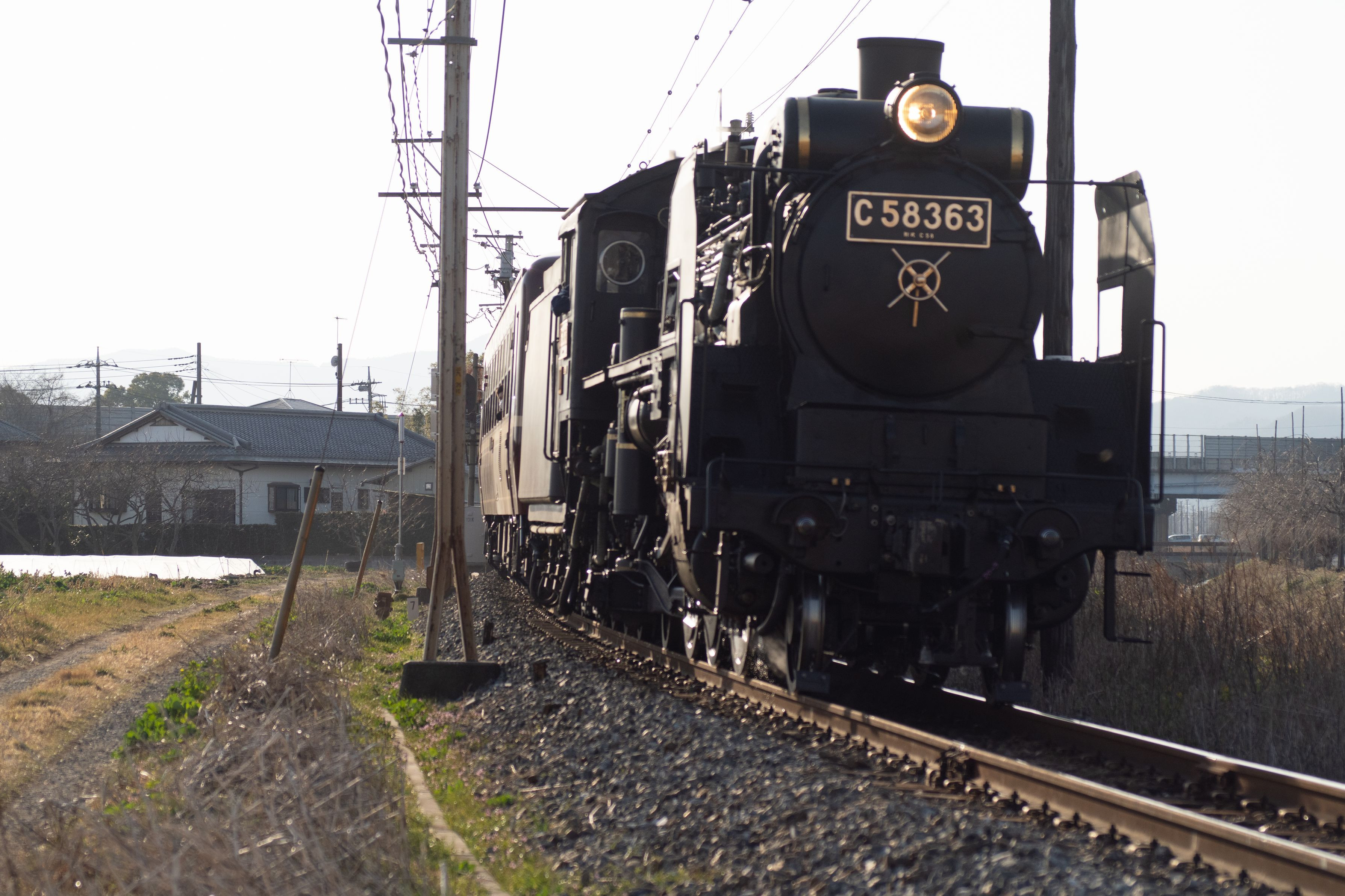 運行して2週目のC58です。秩父から熊谷へ帰る便です。煙がないのが残念ですが、一生懸命走っている姿は感動ものです。