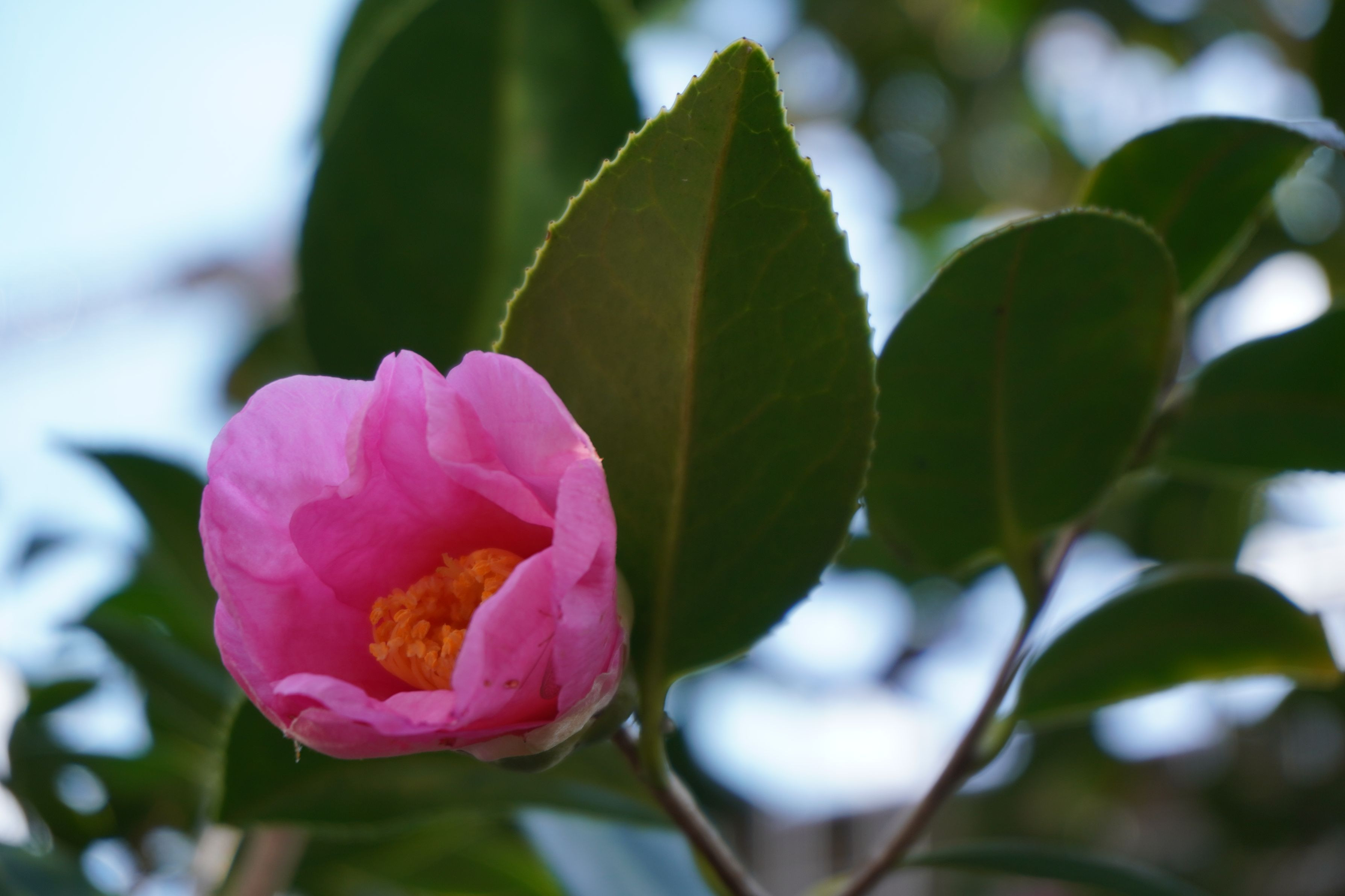 庭の侘助が咲き始めました。 明るいピンクで、春を感じる色です(^^♪ でも、ヒヨドリに突かれてすぐにボロボロになります(^^;