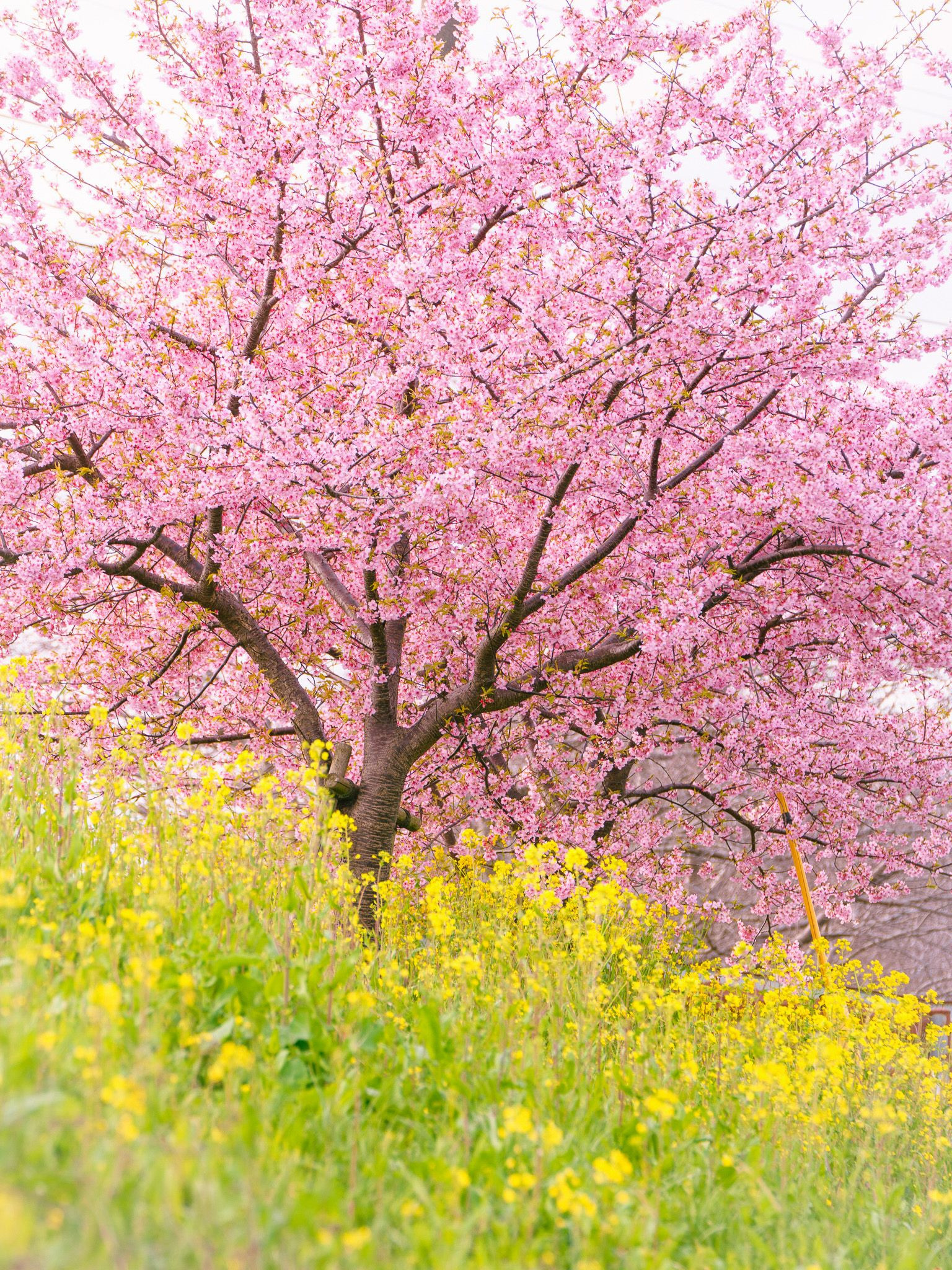 満開の河津桜と菜の花と