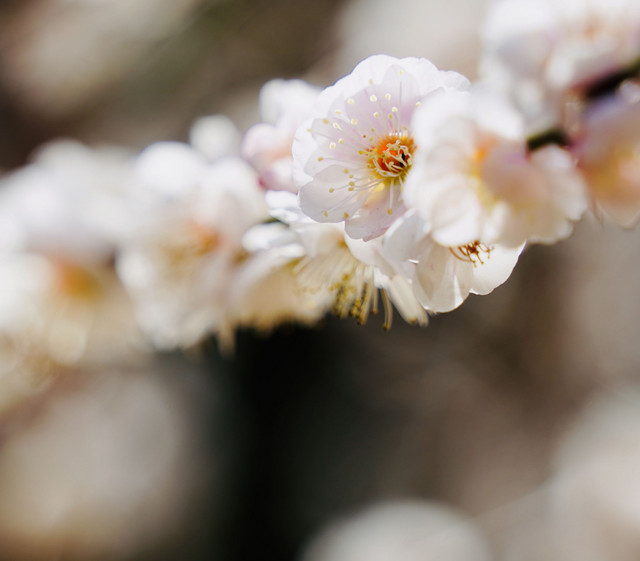 仕事で移動中に、梅の花が綺麗な場所を見つけました。
