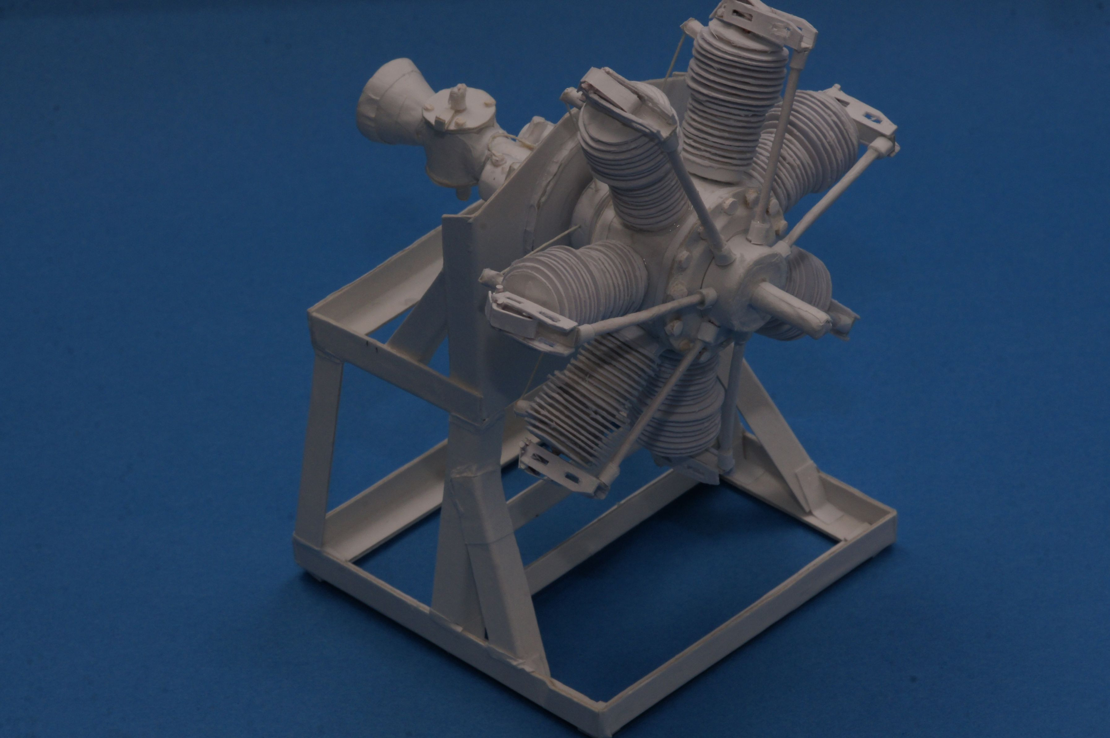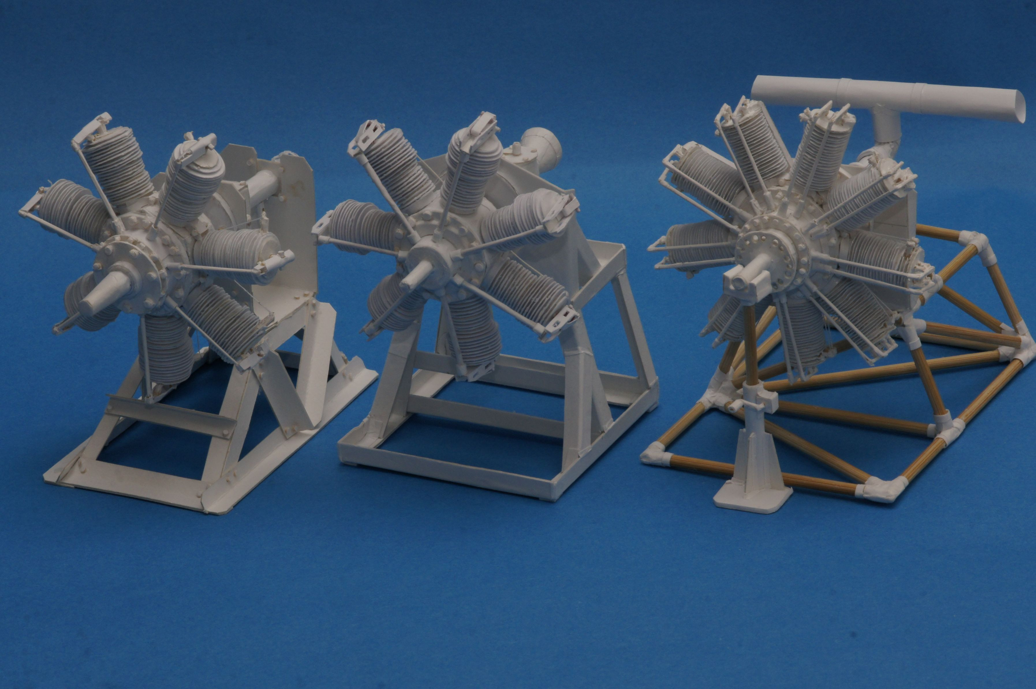 アンリファルマンⅢ型(1910年)に搭載されたグノーム・オメガ50馬力エンジンを厚紙とコピー用紙を主な材料に作りました。紙製なのでプラスチックや金属のような精密感は望めませんが「統一感のある粗さ」でレシプロ航空エンジンの歴史を辿っています。