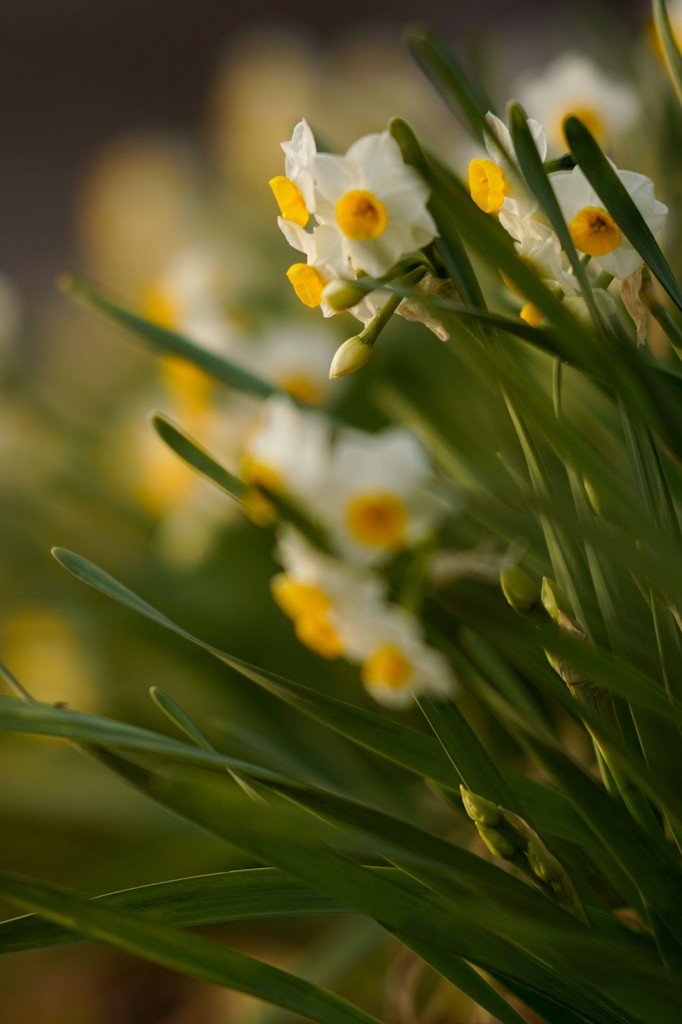 京都鴨川沿いに咲くスイセン。夕焼け色と相まってとても綺麗でした★
