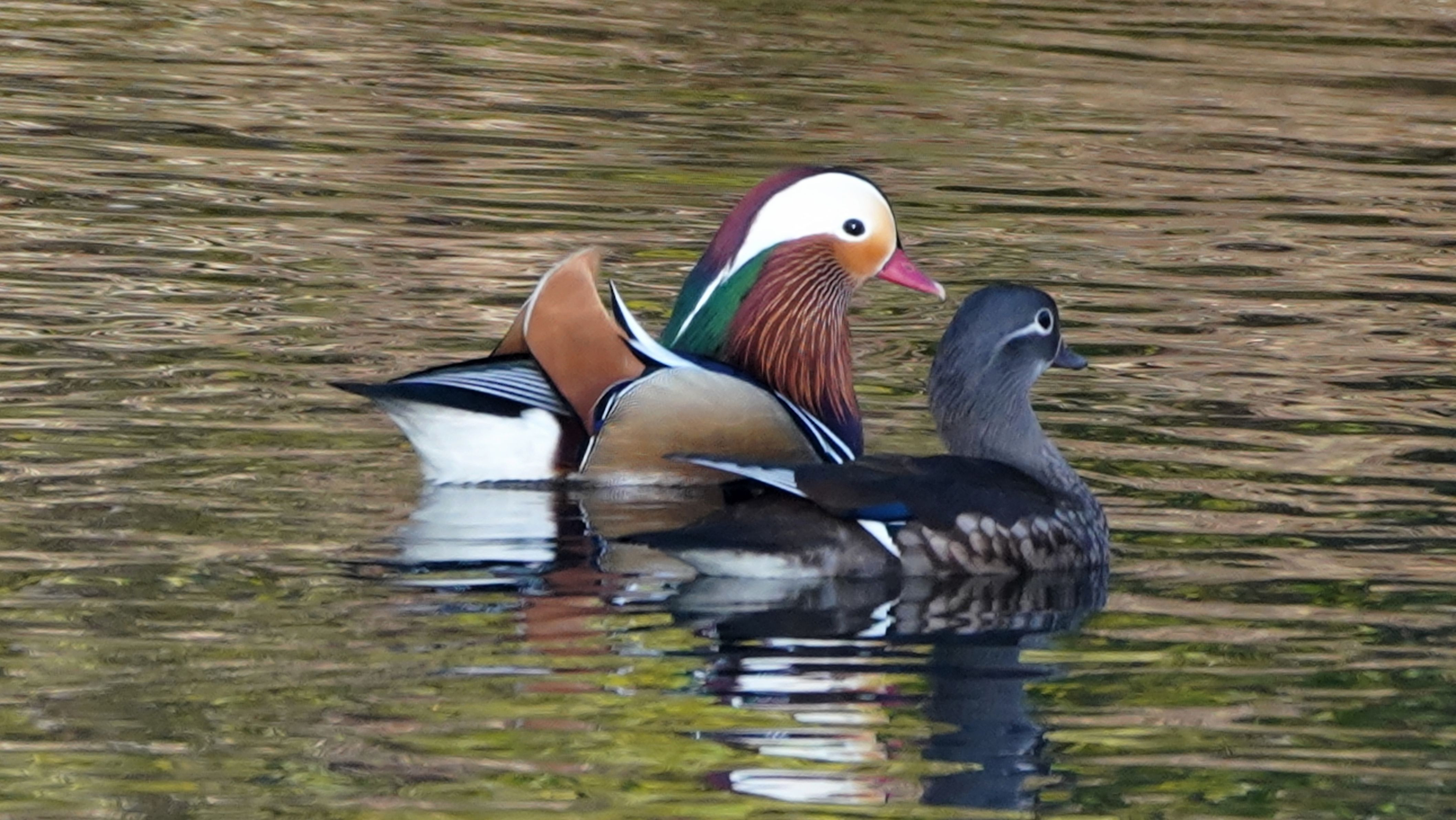オシドリ 滞在100日超え 来た当時は7時過ぎにしか撮れな方が今では6時半過ぎるとOK、ノイズ除去の為4K動画で撮ってたが今では静止画として撮れる様になった。