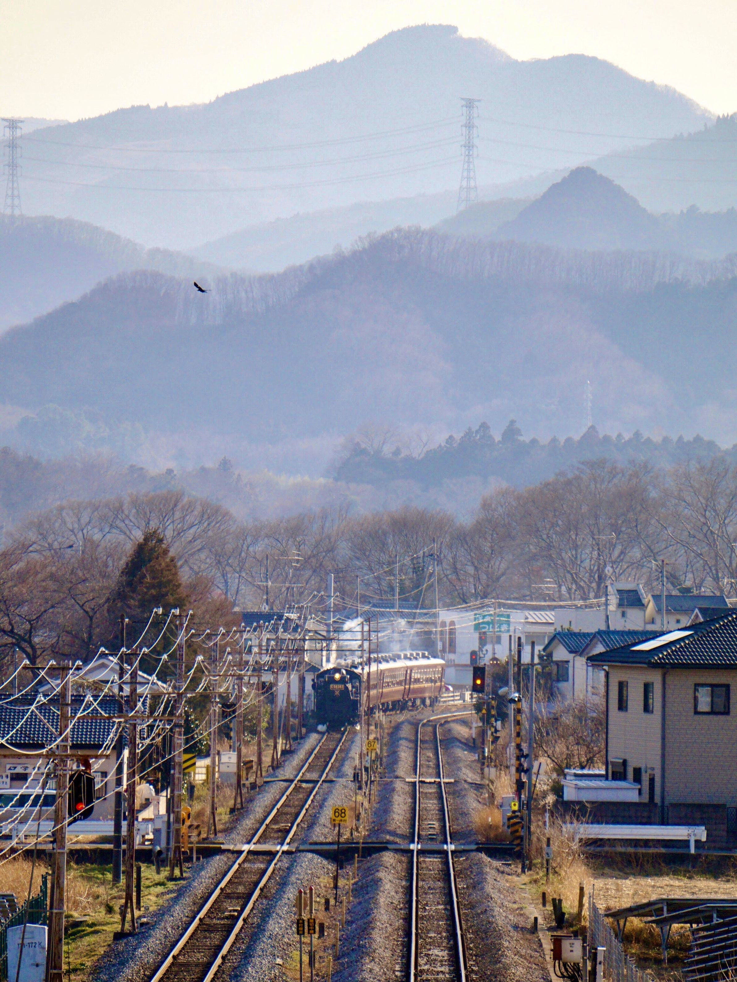 製品情報>My Sony>αcafe>春霞の秩父連山を背に走る「SLパレオエクスプレス」号(manpuku0さん)