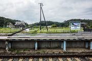 曲がった柱や駅名標、荒れたホームが当時の被害の凄まじさを感じさせます。