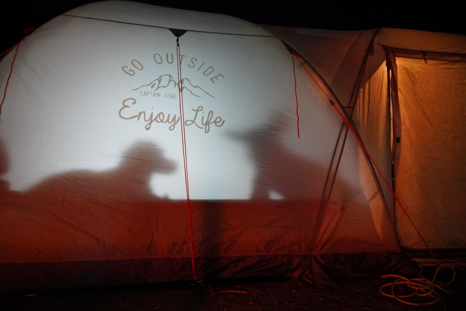 仲良しな わんこ2人でテントの中で密談してる シルエットでバレバレ