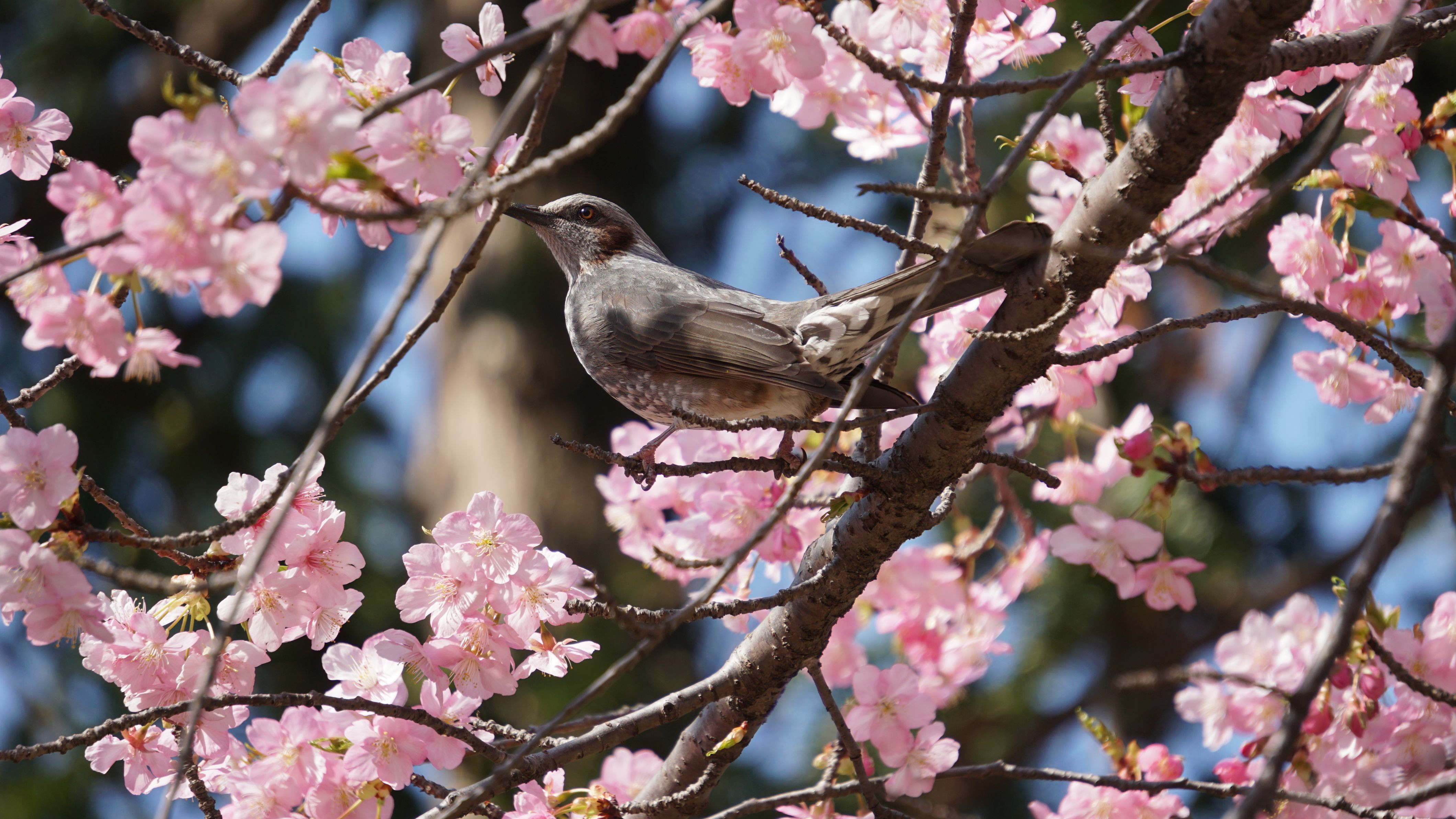 千葉公園で桜の蜜を見繕うヒヨドリ。この日は温かでした。