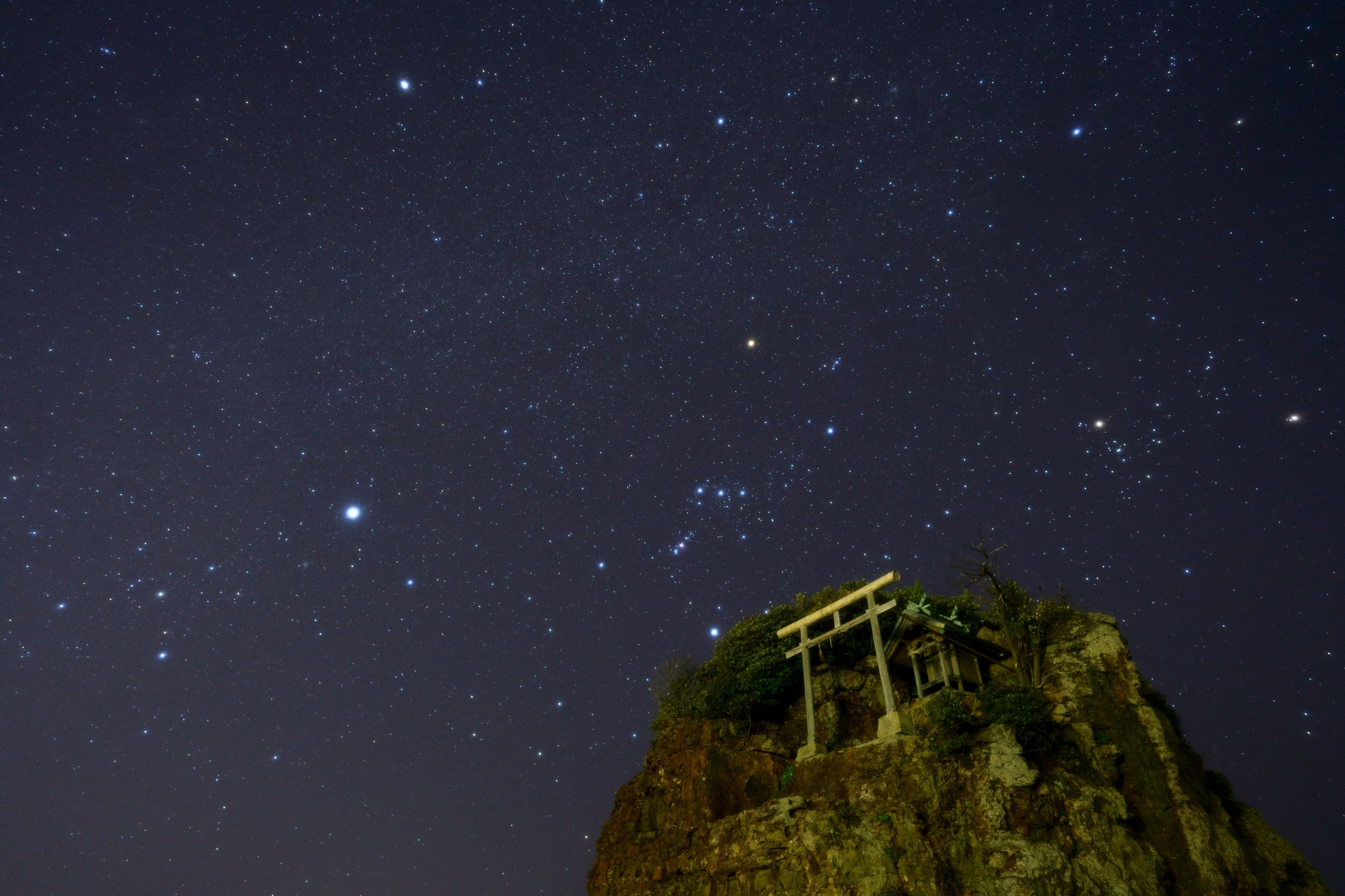 @島根県 弁天島 ソフトフィルター使用 冬の大三角 おおいぬ座が入り切ってない、かな。。。