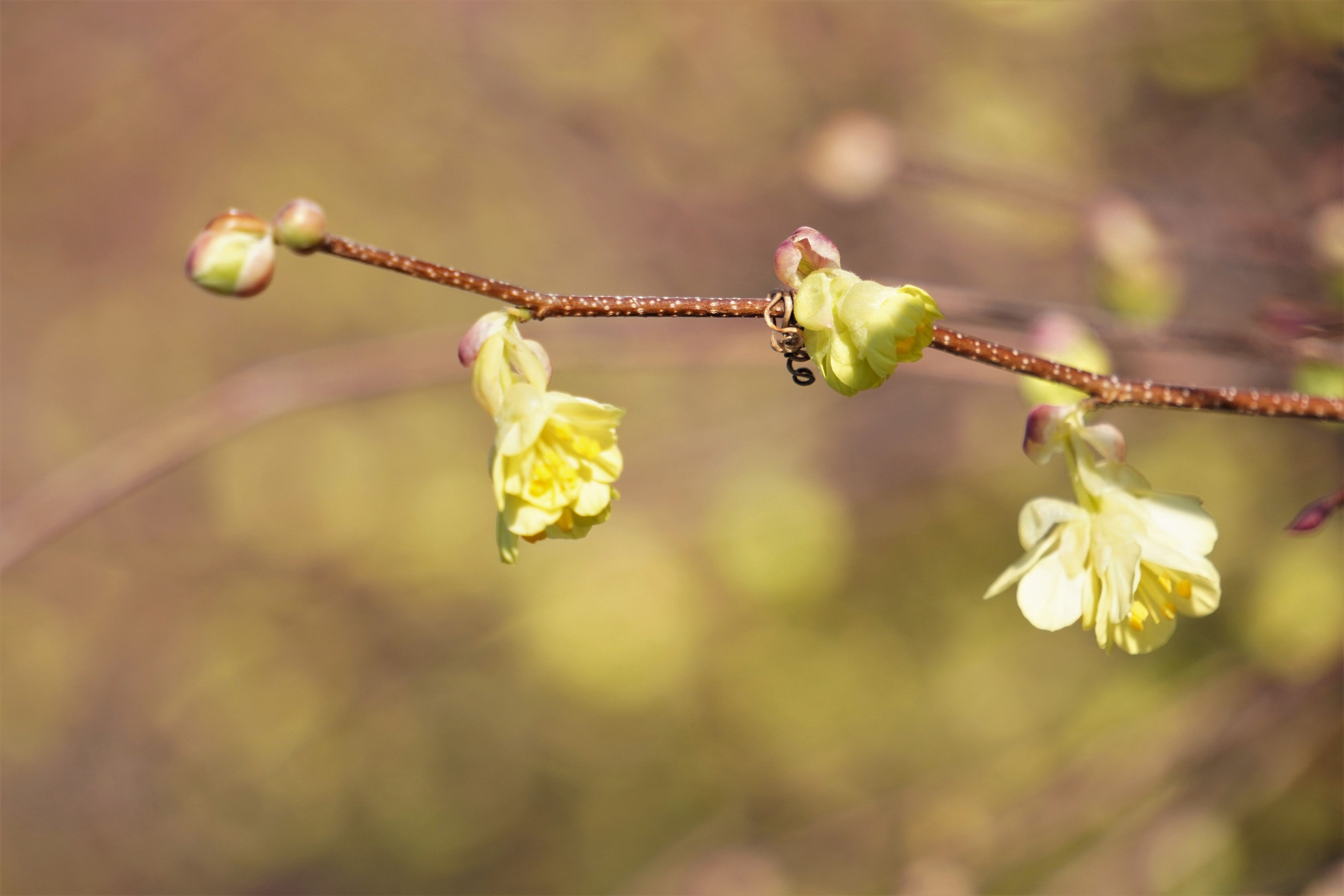 街中を歩いていたら、街路樹のそばにヒュウガミズキが植栽されていました。 花は小さいけど、淡い黄色が光に当たって輝いているので、結構目立ちます。