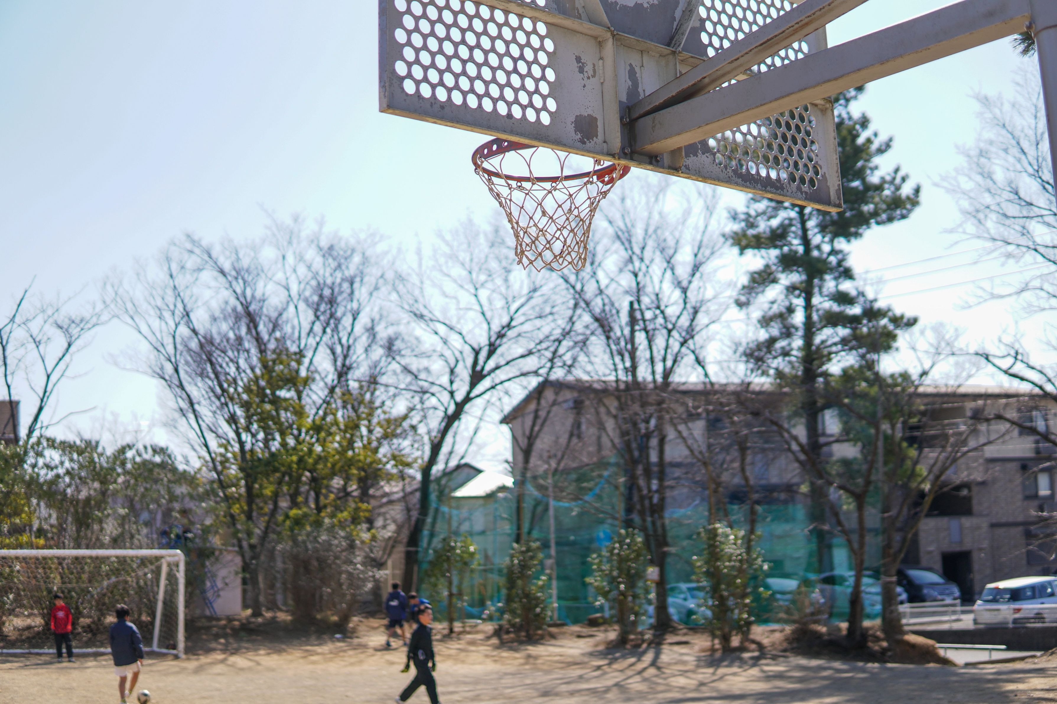 サッカーとバスケのゴールがあるいい公園。