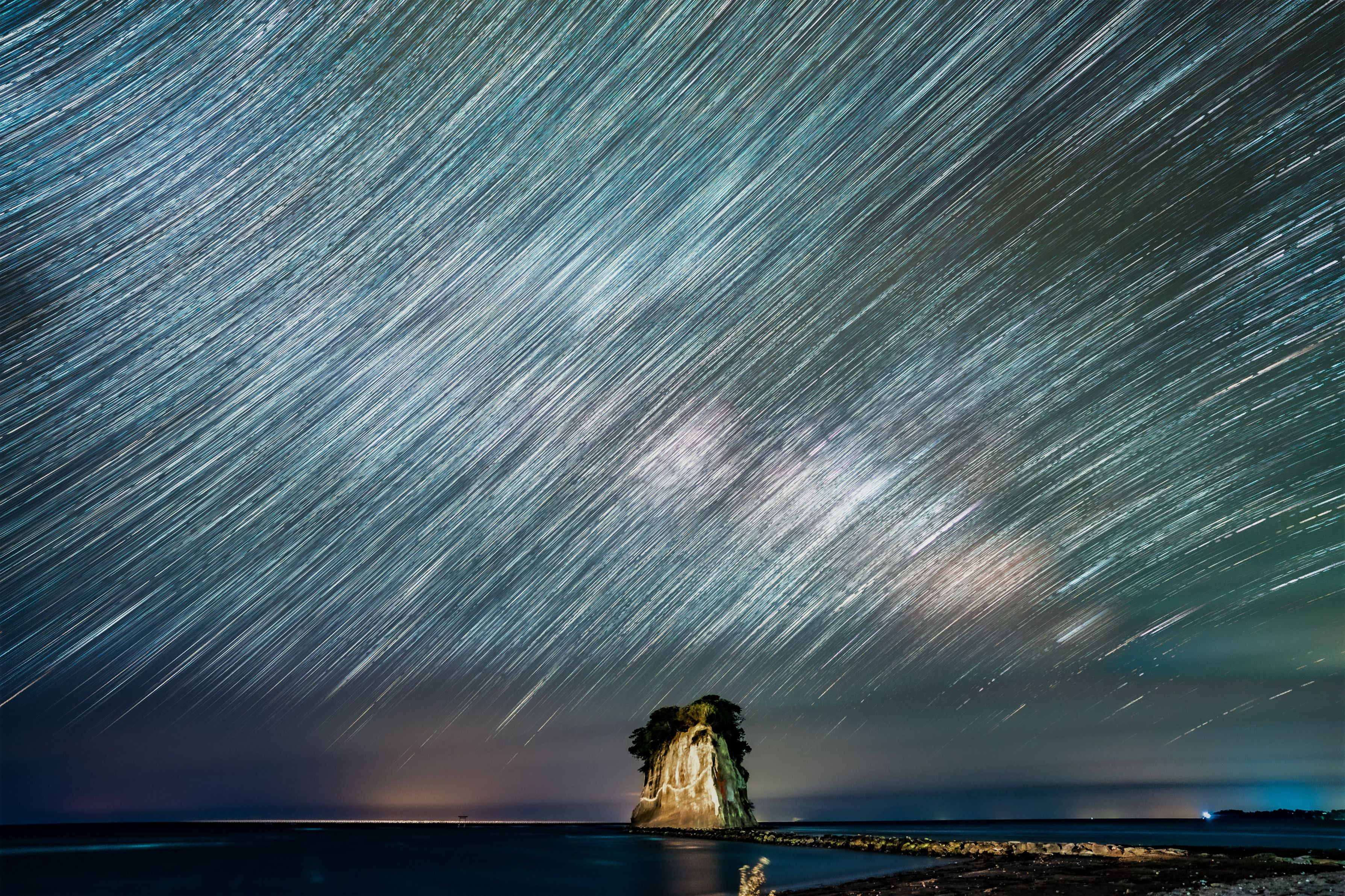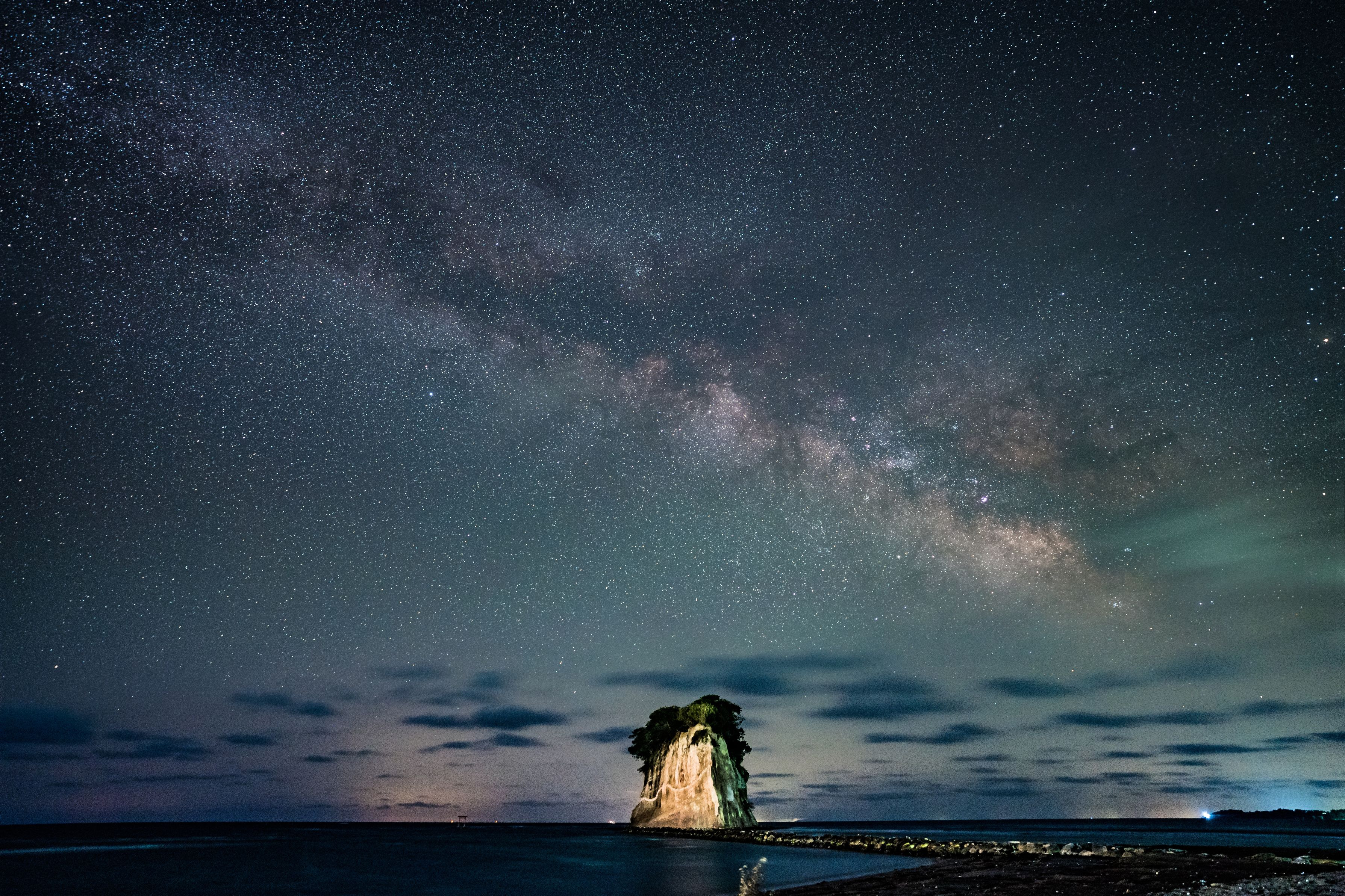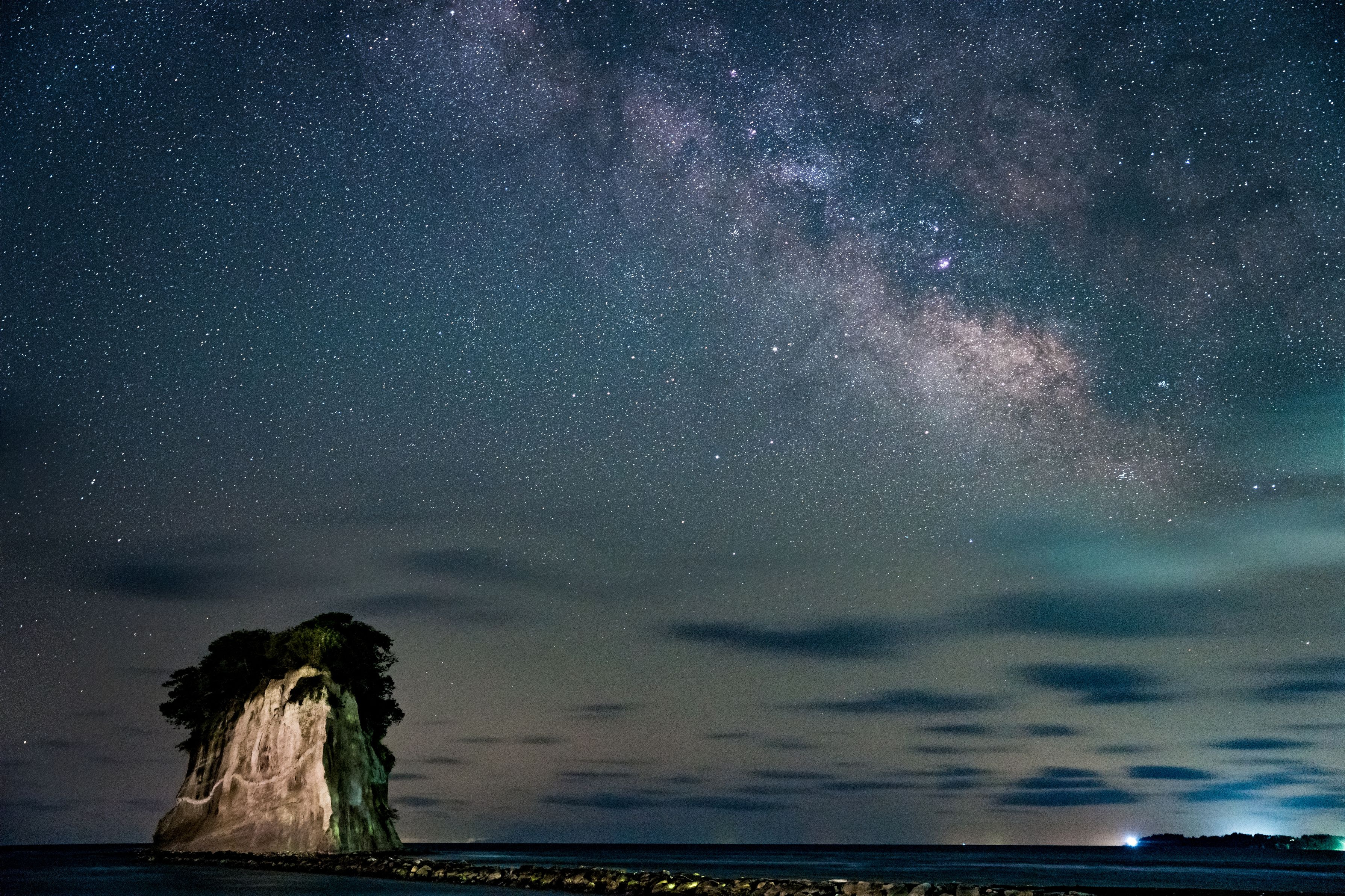 日本海側では珍しい?・・海に浮かぶ天の川を撮影。 Lrで現像⇒×5加算平均合成⇒Psで調整しました。