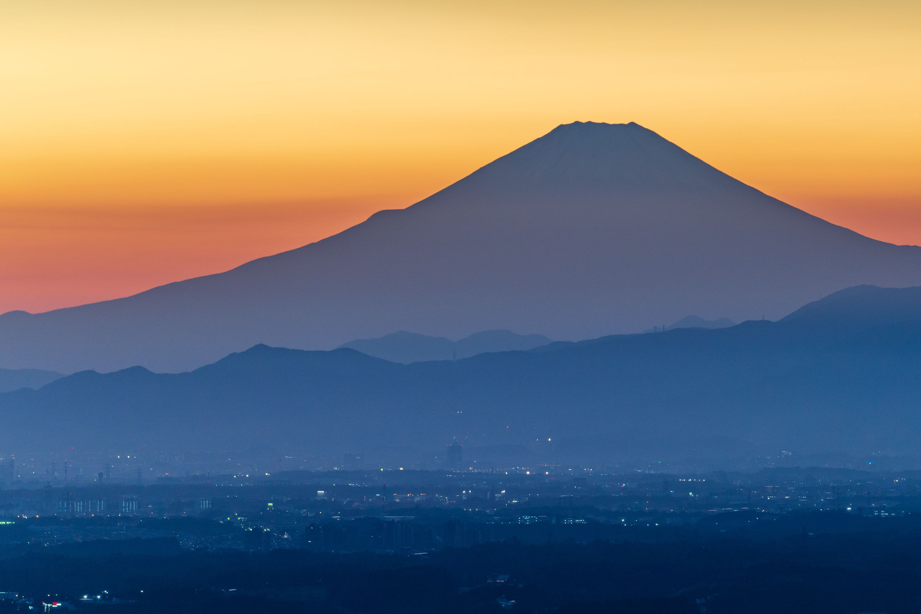 日暮れの時鎌倉から見る富士山
