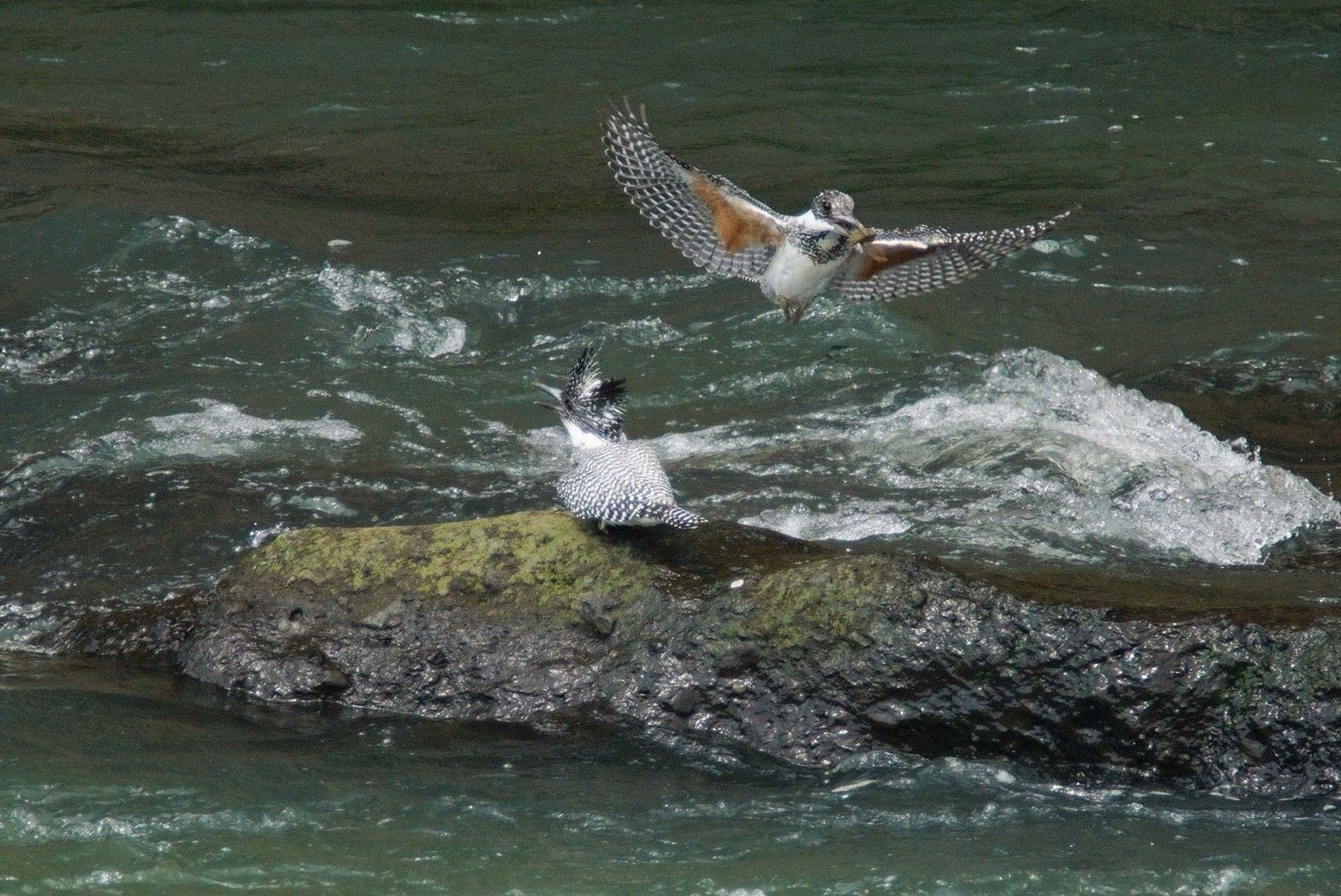 雌ヤマセミが巣穴を掘って雄ヤマセミが待っていた場所を通過した時にシャッターを切りコラボ写真を撮影しました。