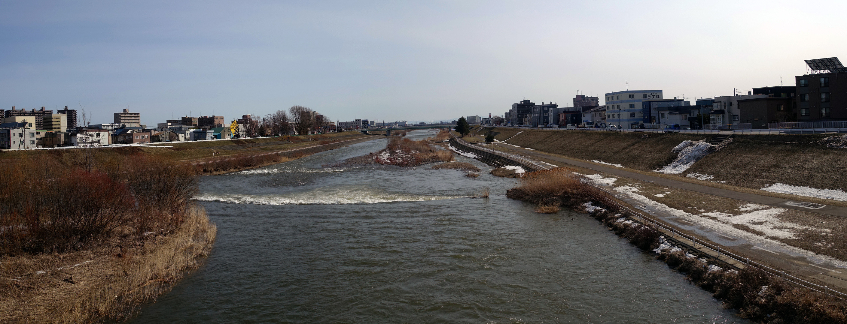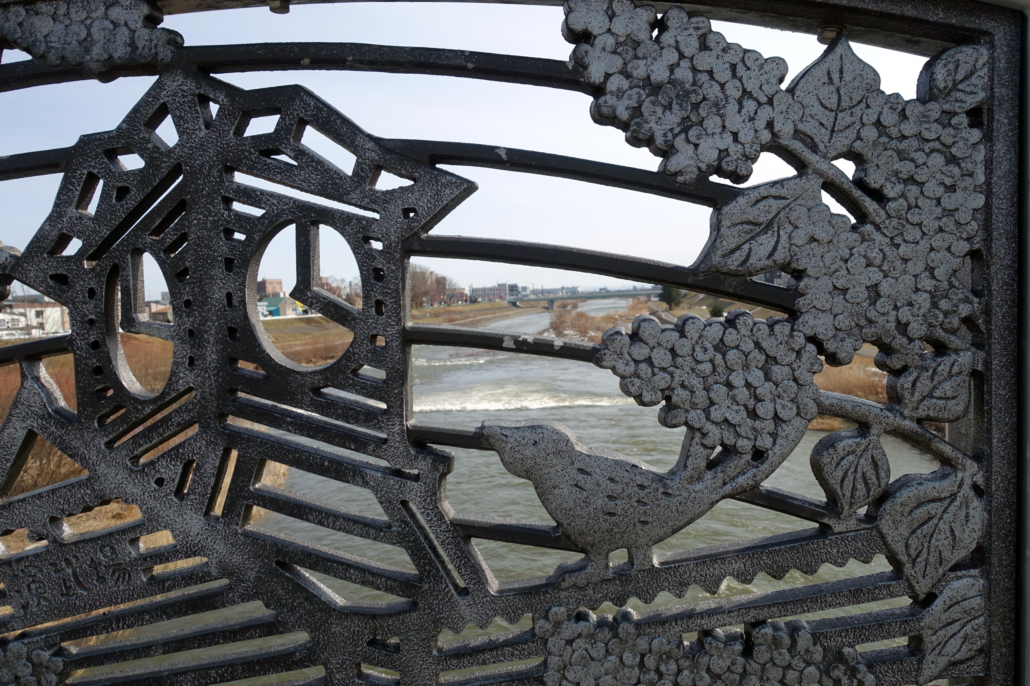 欄干の向こうは川 川の向こうには鉄道・・・