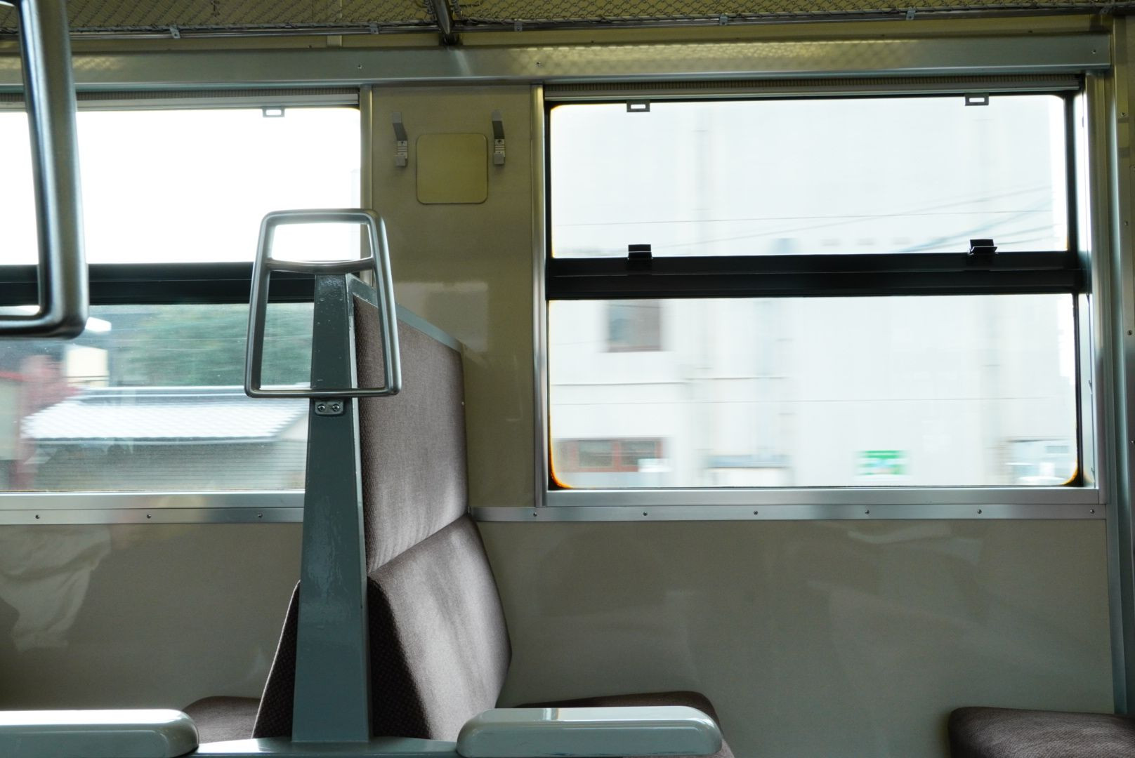 通勤途中日ごろは席埋まるのですが春休み中でがらんとした車内光景を撮りました