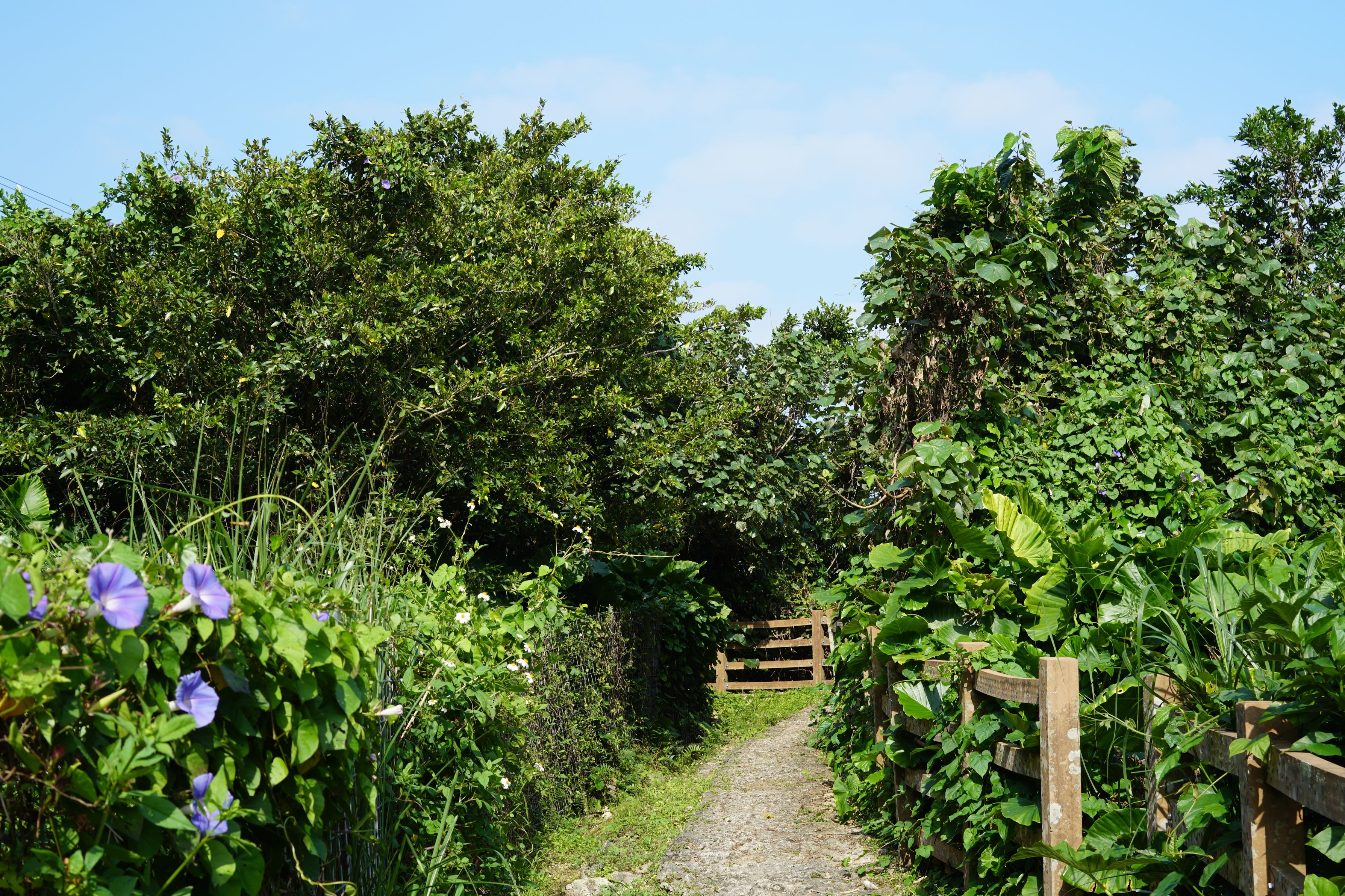 植物の濃い緑色と綺麗な青空を入れ、沖縄の自然が伝わる様に撮影しました。