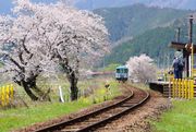 さくらのトンネルの下を1両編成の気動車がとことこと駆け抜けていきました。