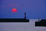 愛媛県松山市今出港の夕陽です♪ 静寂の夕凪の中に消え入るような夕日でした(^^)